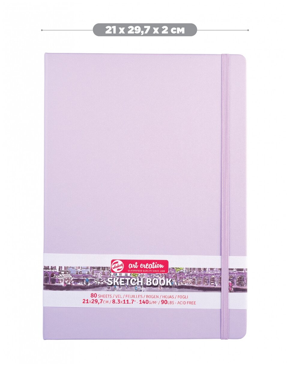 Скетчбук для зарисовок Talens Art Creation 140г/кв.м 21х29.7см. 80 листов цвета слоновой кости, пастельно-фиолетовая твердая обложка информация: