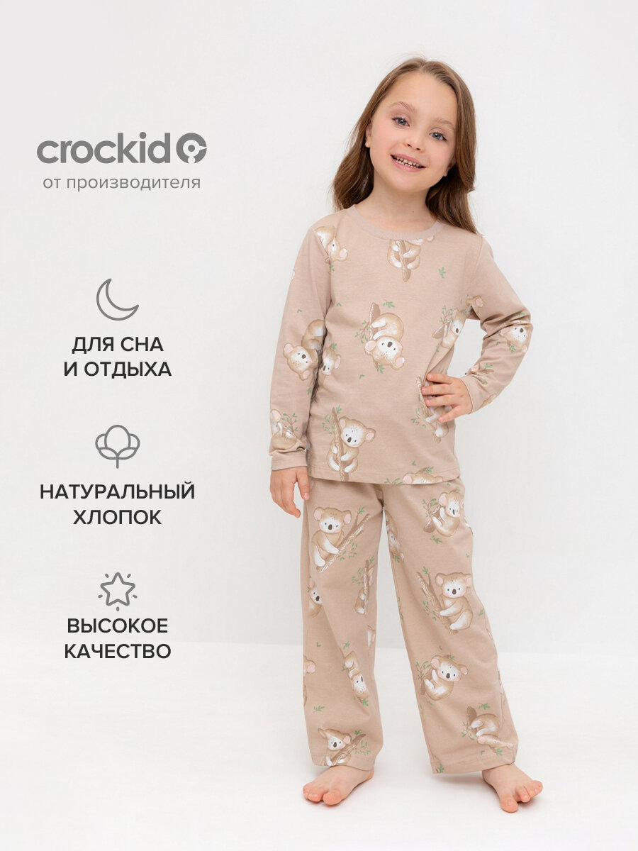 Пижама crockid К 1622/какао,коалы, размер 64/122, бежевый 994 ₽