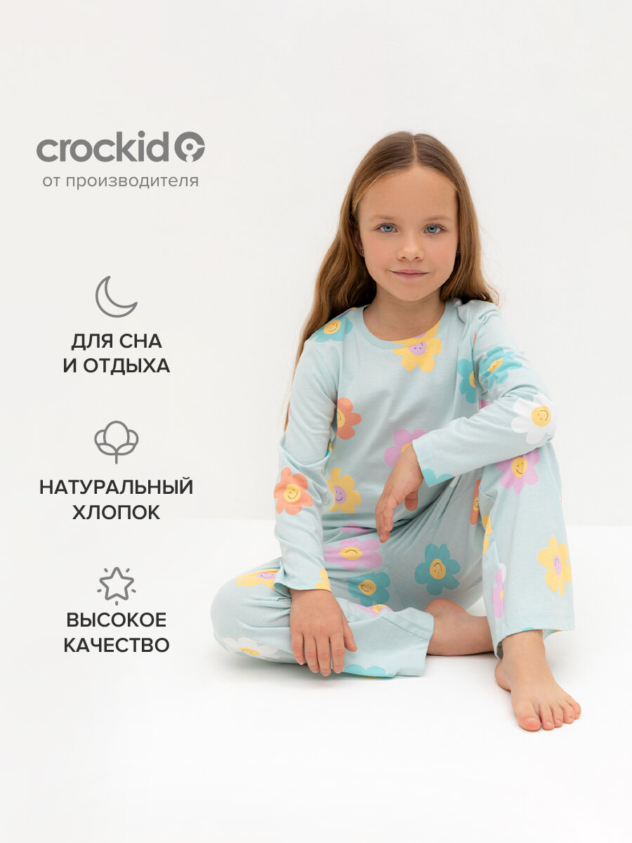 Пижама crockid К 1622/25/голубой опал,цветы, размер 72/140, голубой 1 403 ₽