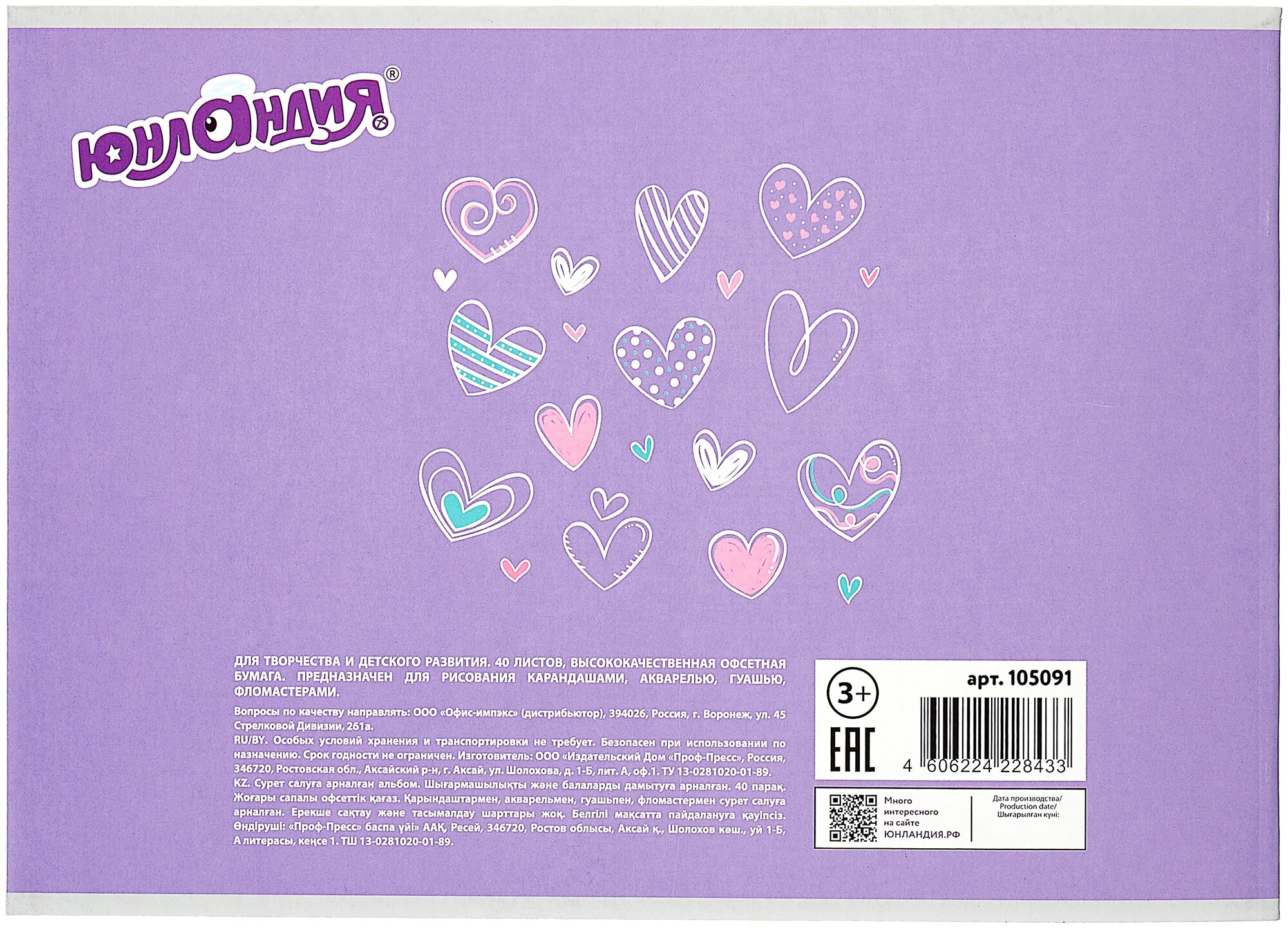 Юнландия Альбом для рисования, А4, 40 листов, скоба, обложка картон, юнландия, 202х285 мм, "Ламы" (1 вид), 105089