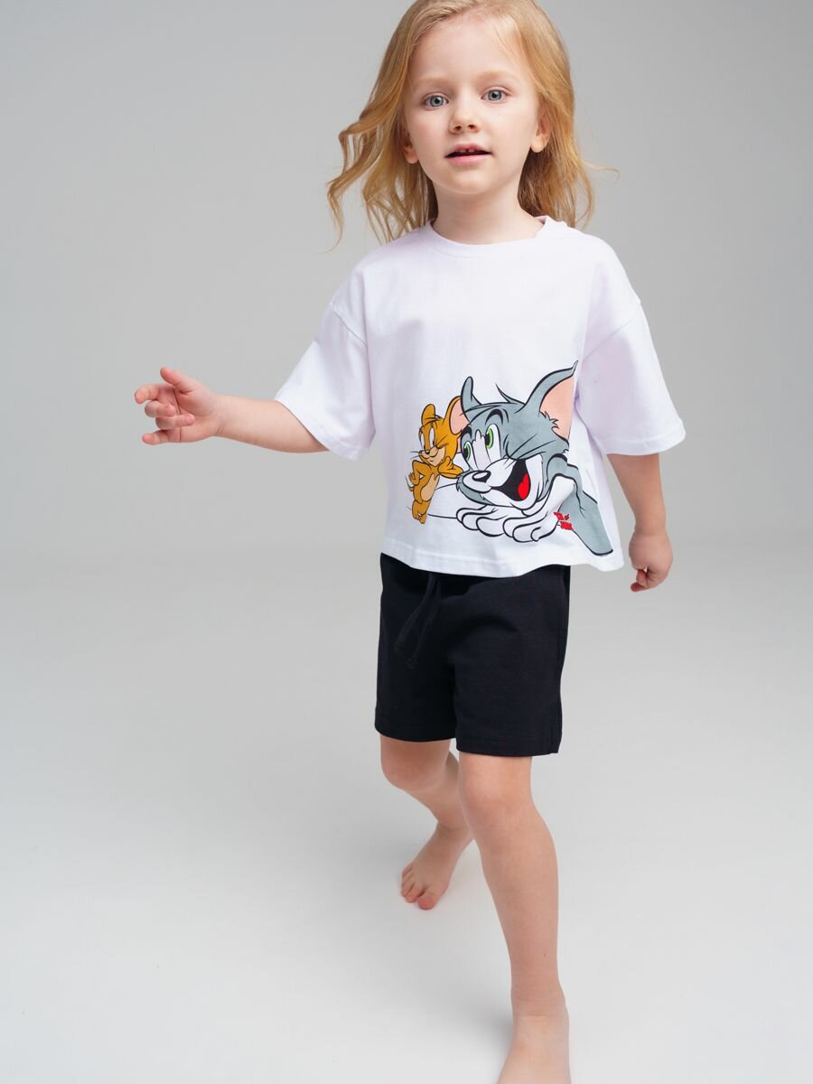 Пижама playToday Весна-лето 2025, размер 104, белый/черный информация: