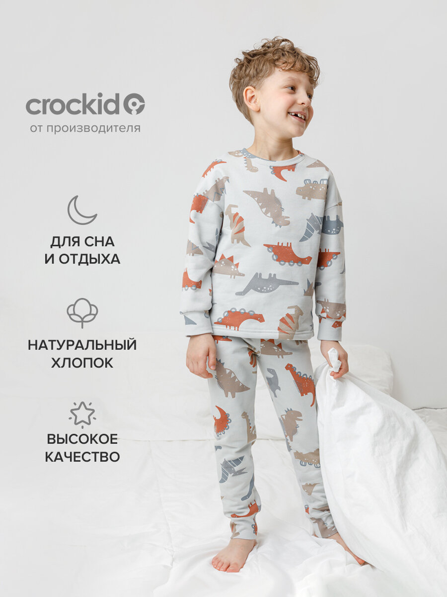 10 цен на Пижама crockid К 1587/речной перламутр,динозавры, размер 56/98, серый