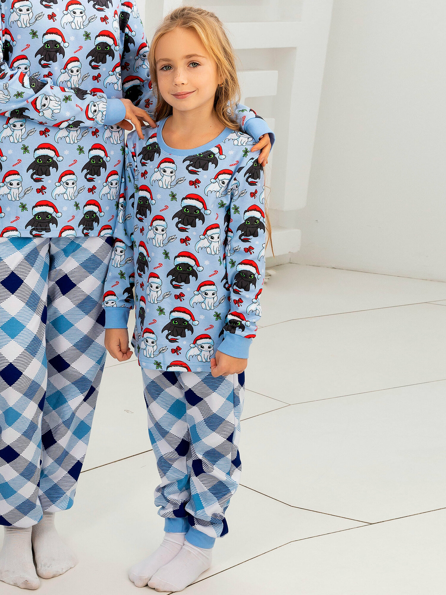 Пижама Miko Yumi, размер 122, черный, белый, голубой, синий 1 400 ₽