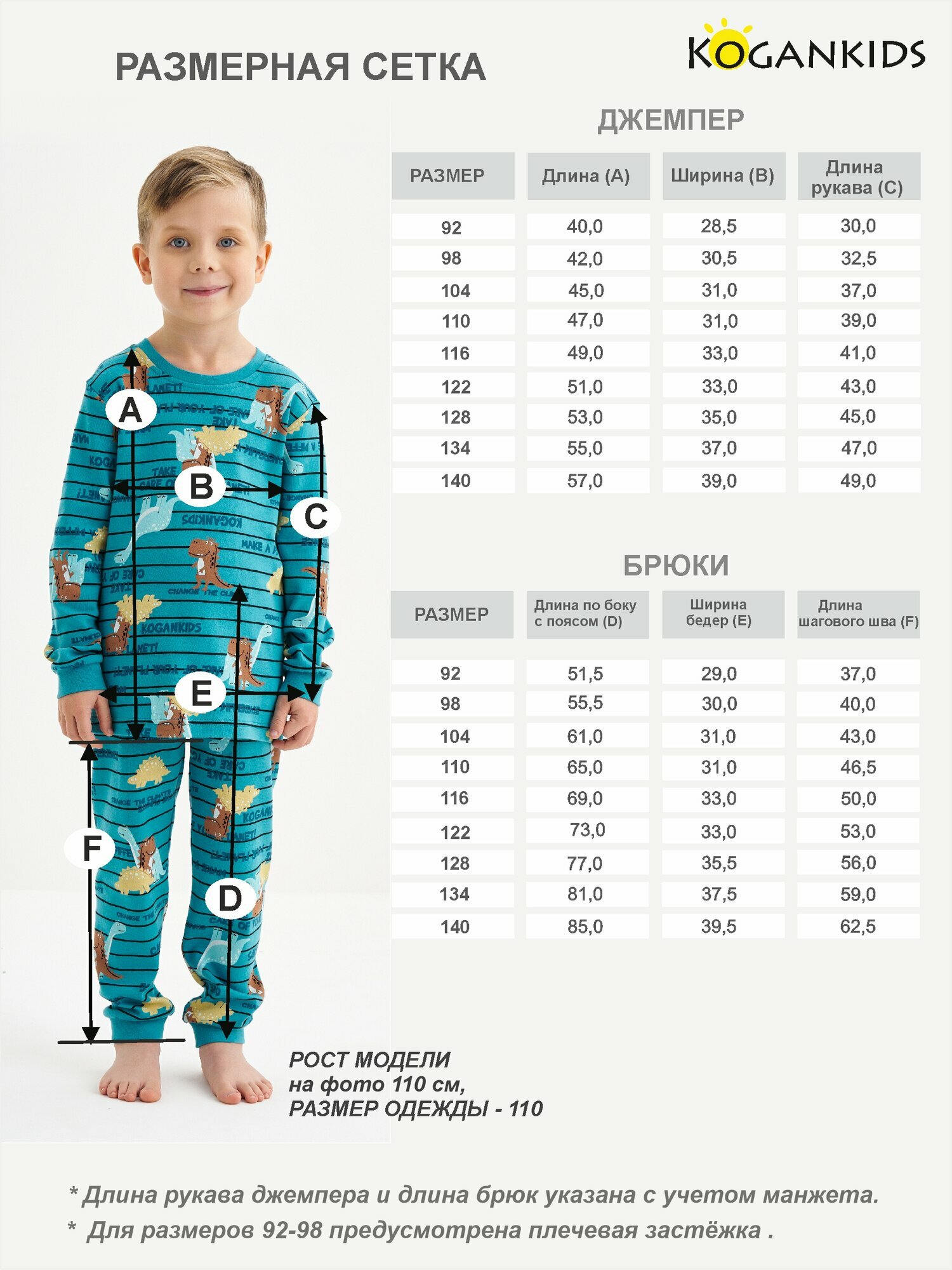 Пижама Kogankids, размер 104 / 4 года, бирюзовый информация: