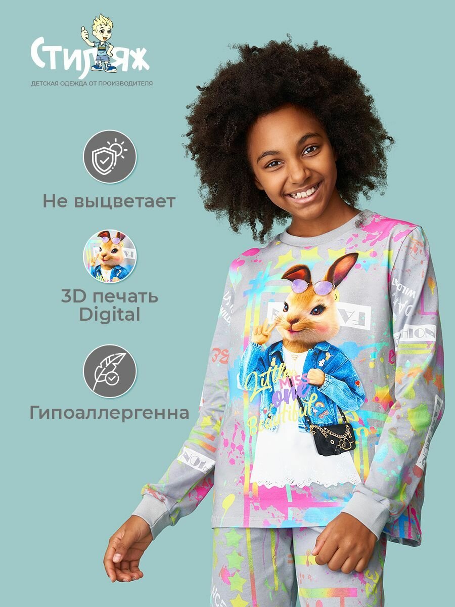 Пижама Стиляж, размер 140, серо-розовый 1 084 ₽