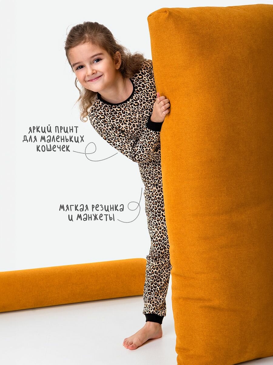 Пижама Happyfox Для девочек, размер 116, черный, бежевый, коричневый информация: