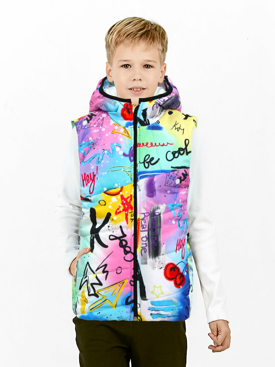 Жилет KETMIN детский с капюшоном демисезонный, размер 110, мультиколор, бирюзовый информация: