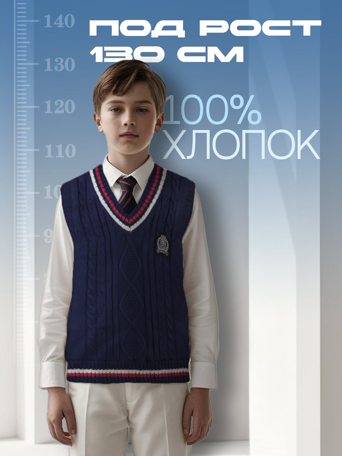 10 цен на Школьный жилет 2beMan Базовая коллекция, размер 130, темно-синий