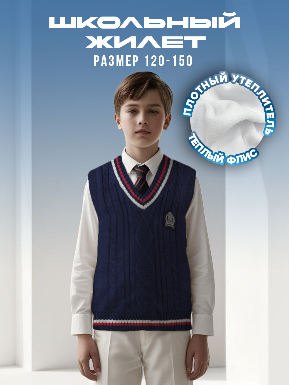 10 цен на Школьный жилет 2beMan Базовая коллекция, размер 150, темно-синий