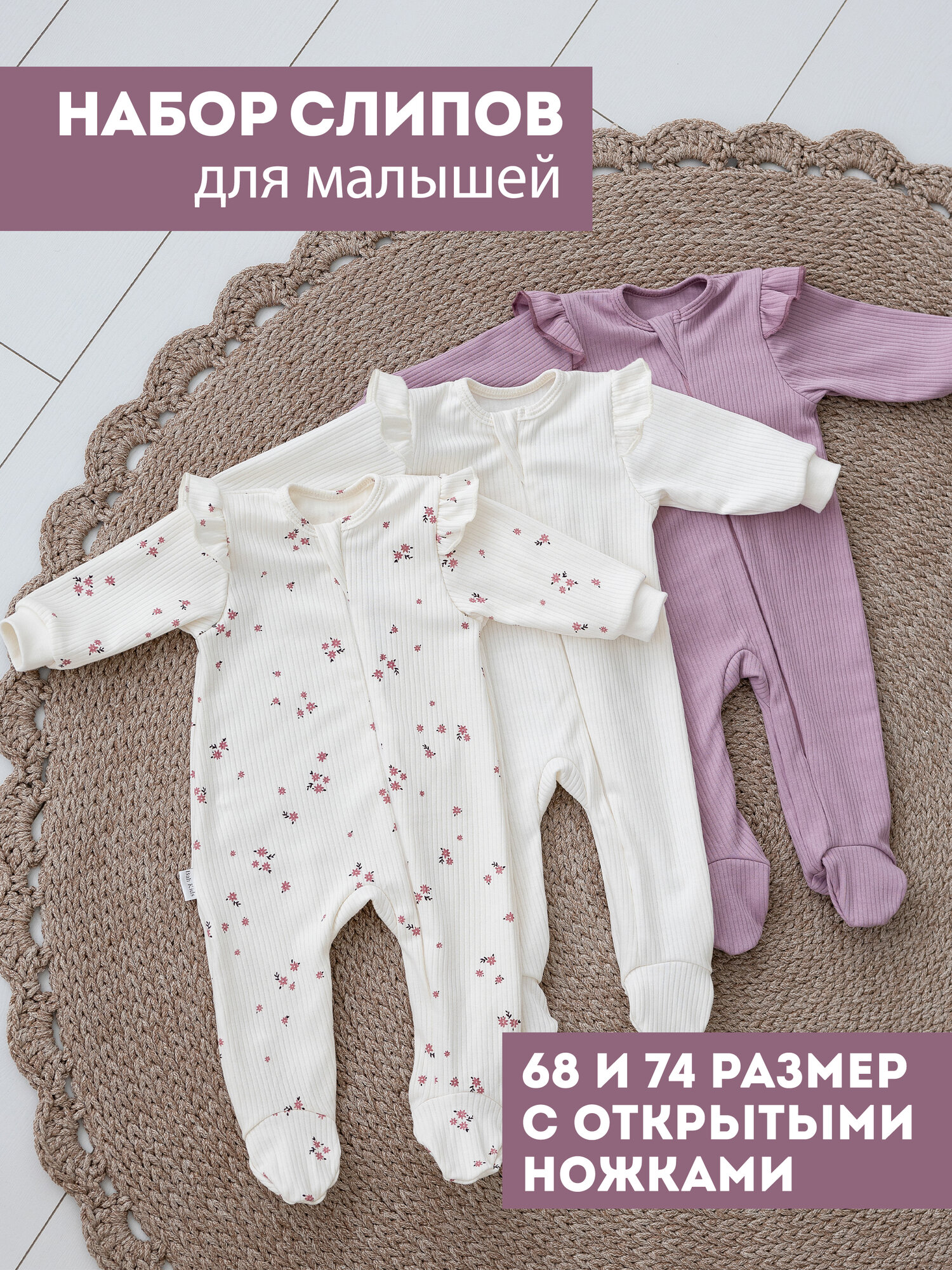 Комбинезон Bah Kids Новорожденка и малыши, закрытая стопа, комплект из 3 шт., размер 68, лиловый, белый 3 060 ₽