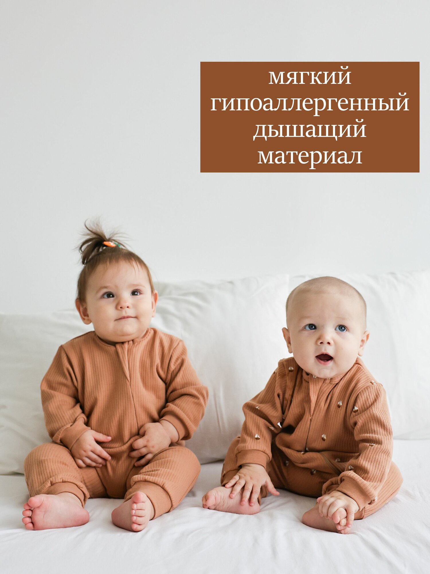 Комбинезон Bah Kids Осень-зима 2024, открытая стопа, комплект из 3 шт., размер 68, бежевый, коричневый, белый 3 060 ₽