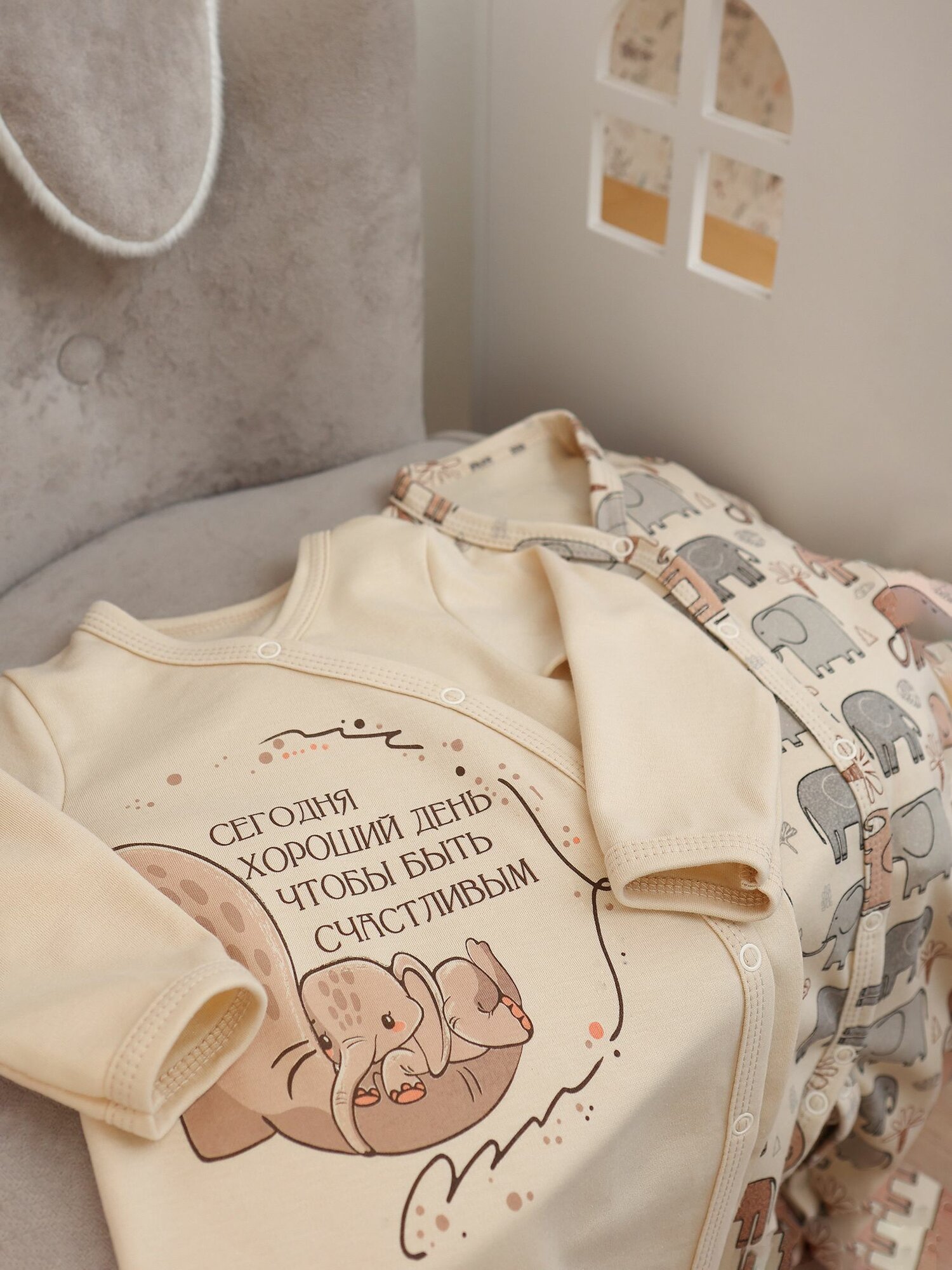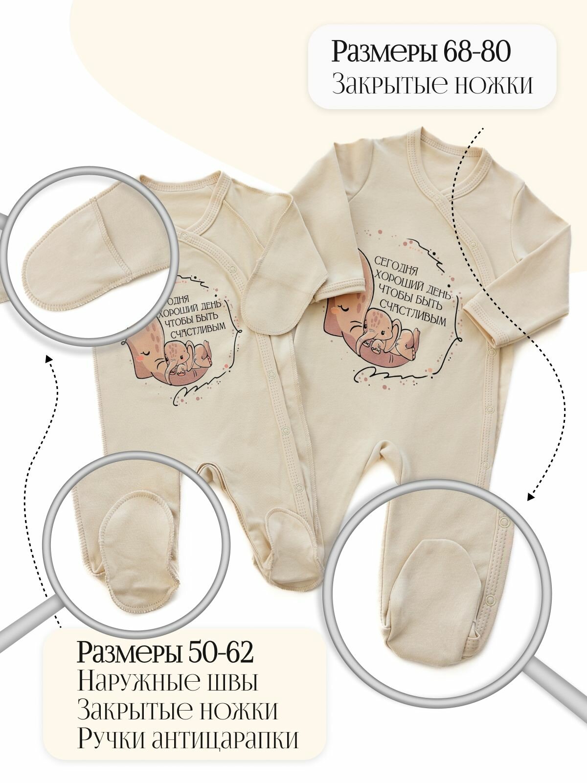 Комбинезон BABYGLORY Слоники, закрытая стопа, комплект из 2 шт., размер 26-80, бежевый информация: