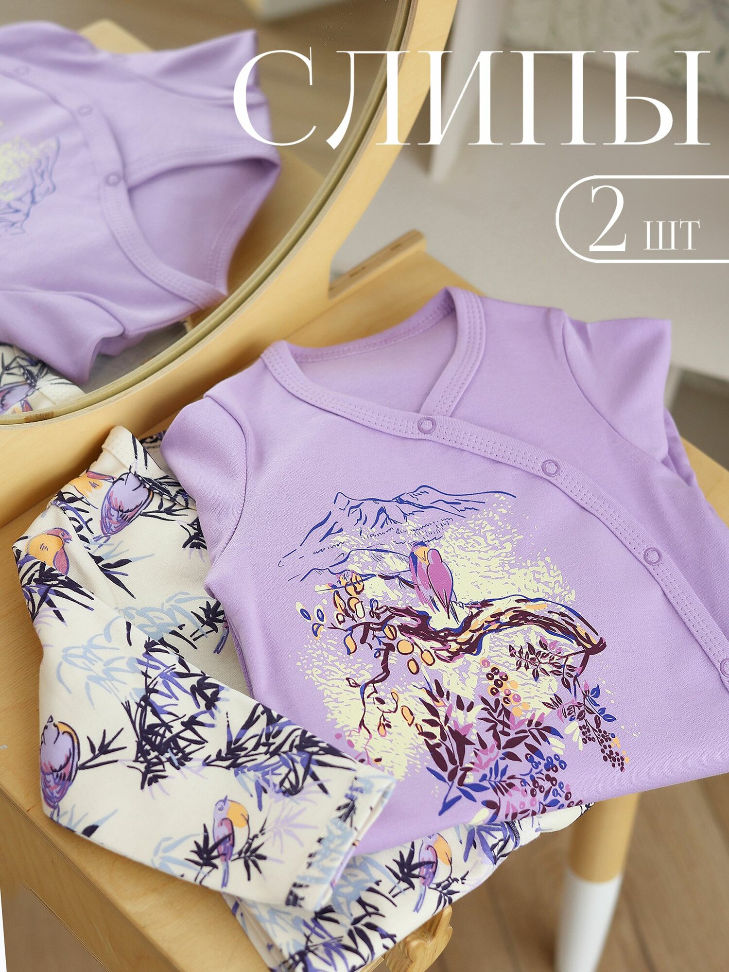 Комбинезон BABYGLORY Райский сад, закрытая стопа, комплект из 2 шт., размер 22-68, светло-сиреневый 1 495 ₽