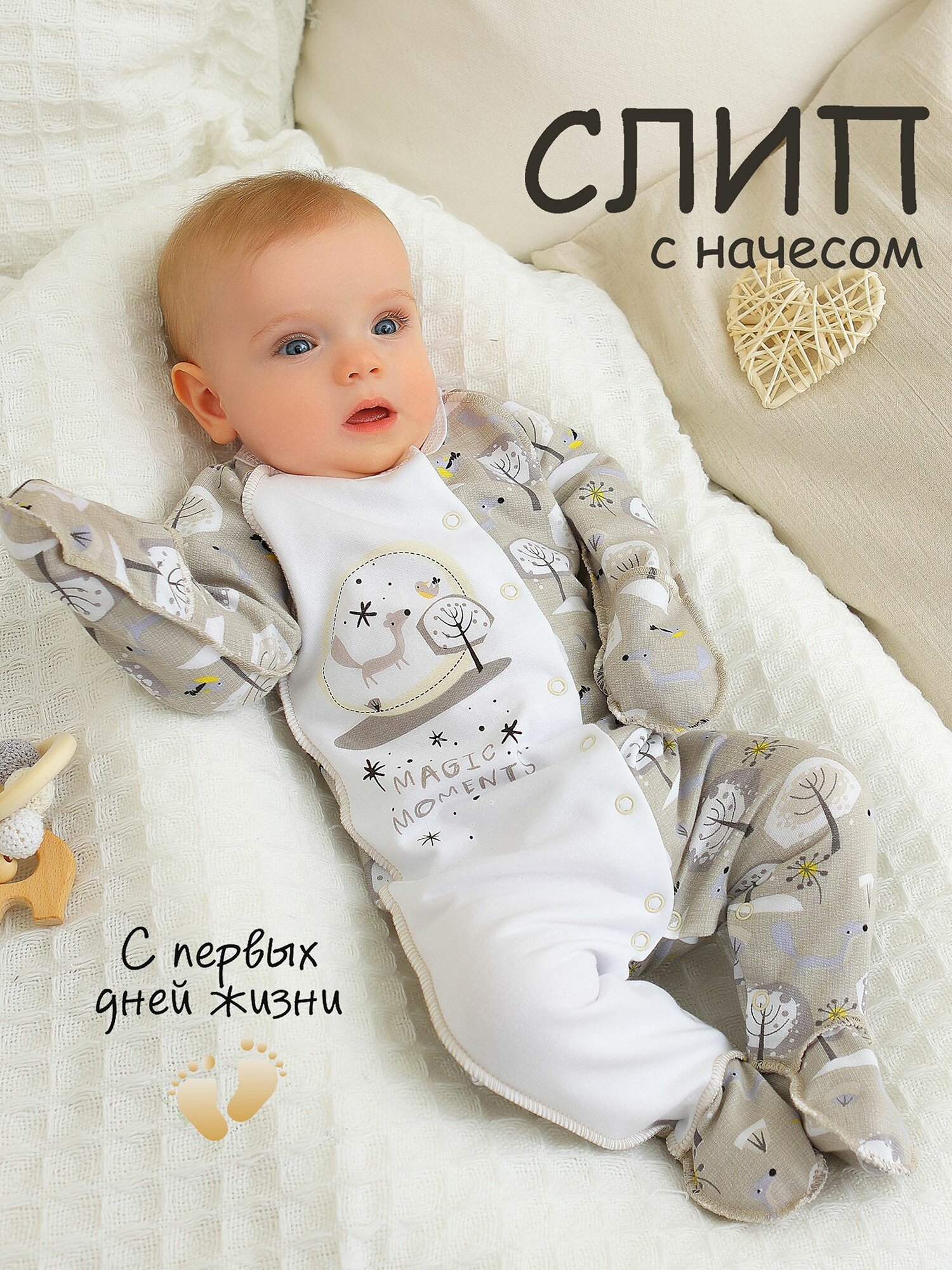 Комбинезон BABYGLORY Волшебные моменты, закрытая стопа, размер 16-50, бежевый информация: