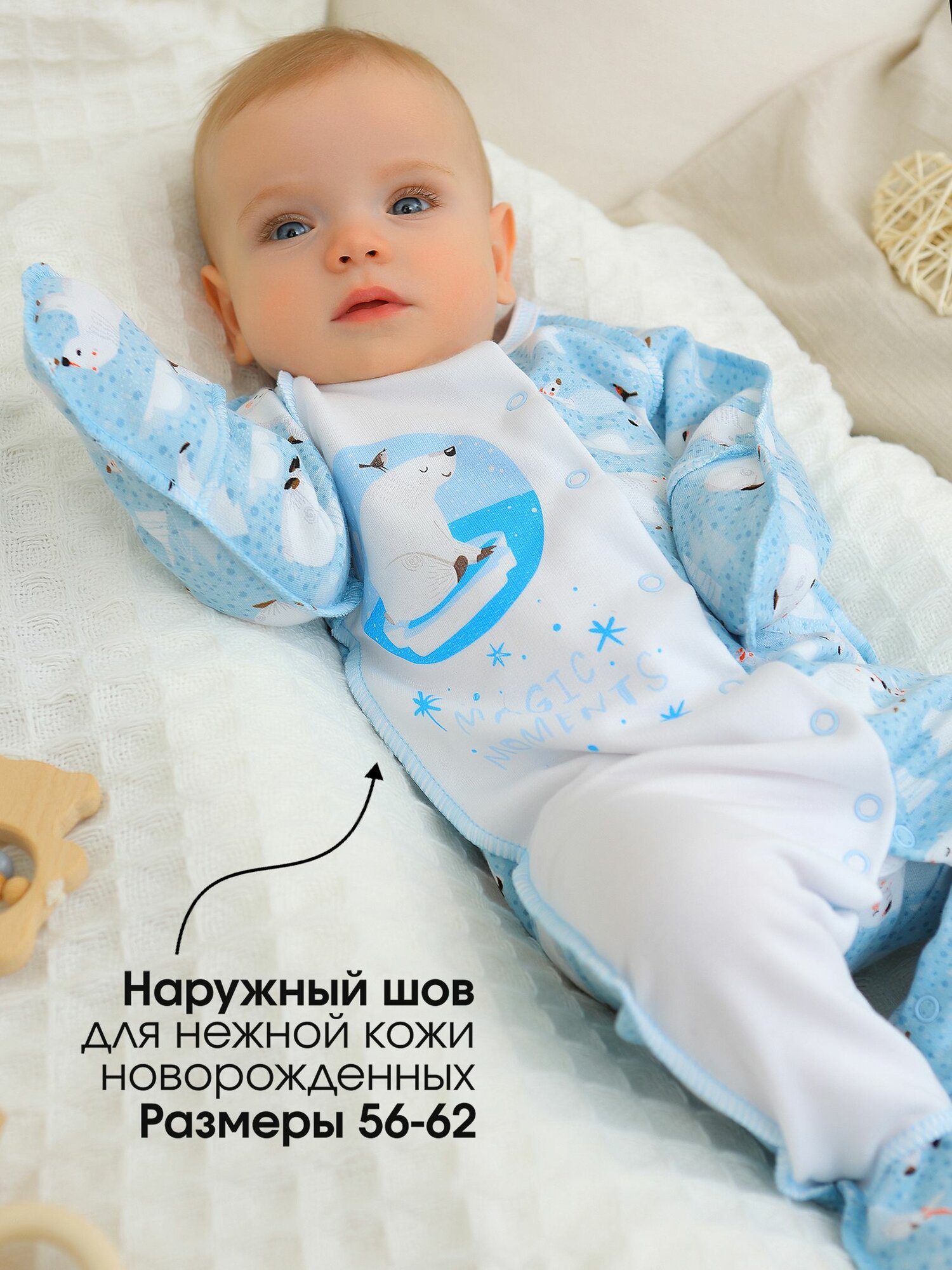 Комбинезон BABYGLORY Волшебные моменты, закрытая стопа, размер 56/62, cиний 1 026 ₽
