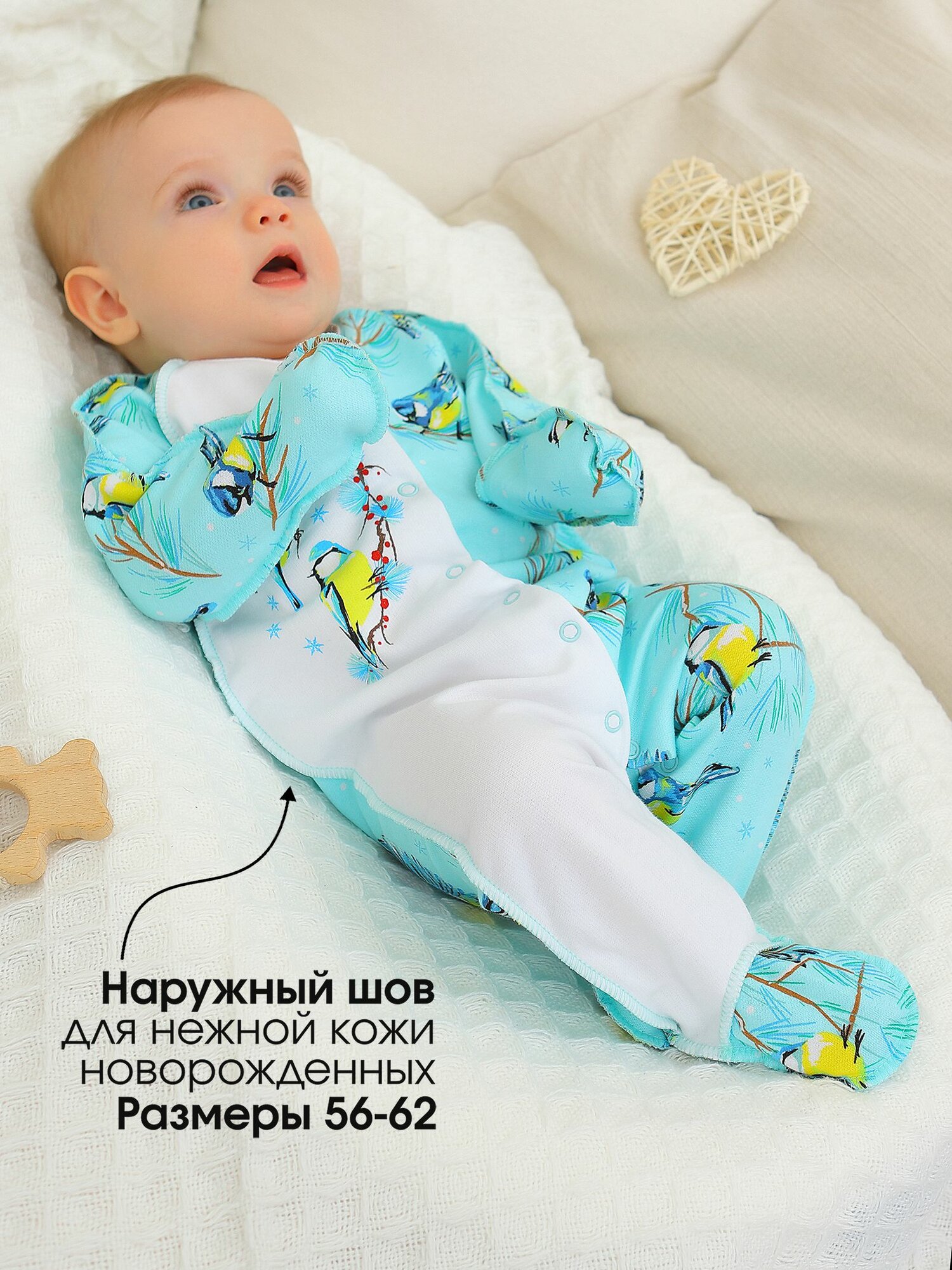 Комбинезон BABYGLORY Зимняя сказка, закрытая стопа, размер 20-62, ментоловый информация: