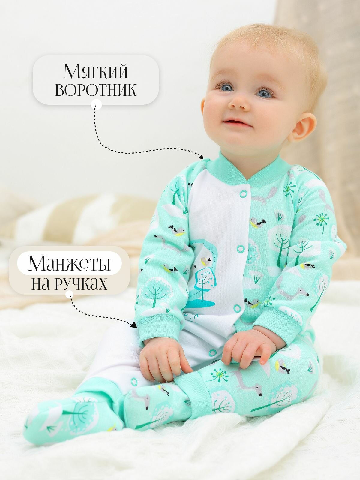 Комбинезон BABYGLORY Волшебные моменты, закрытая стопа, размер 56/62, зеленый 1 026 ₽