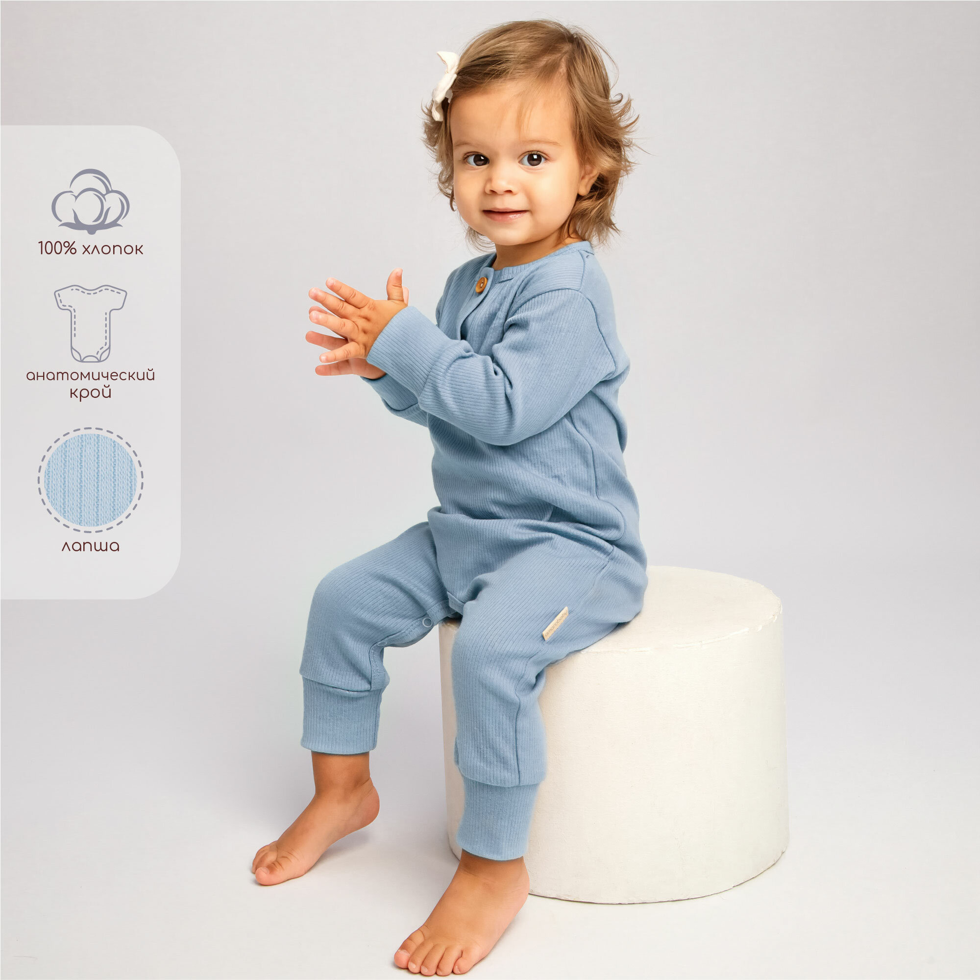 Комбинезон Amarobaby Fashion, открытая стопа, размер 74, blue информация:
