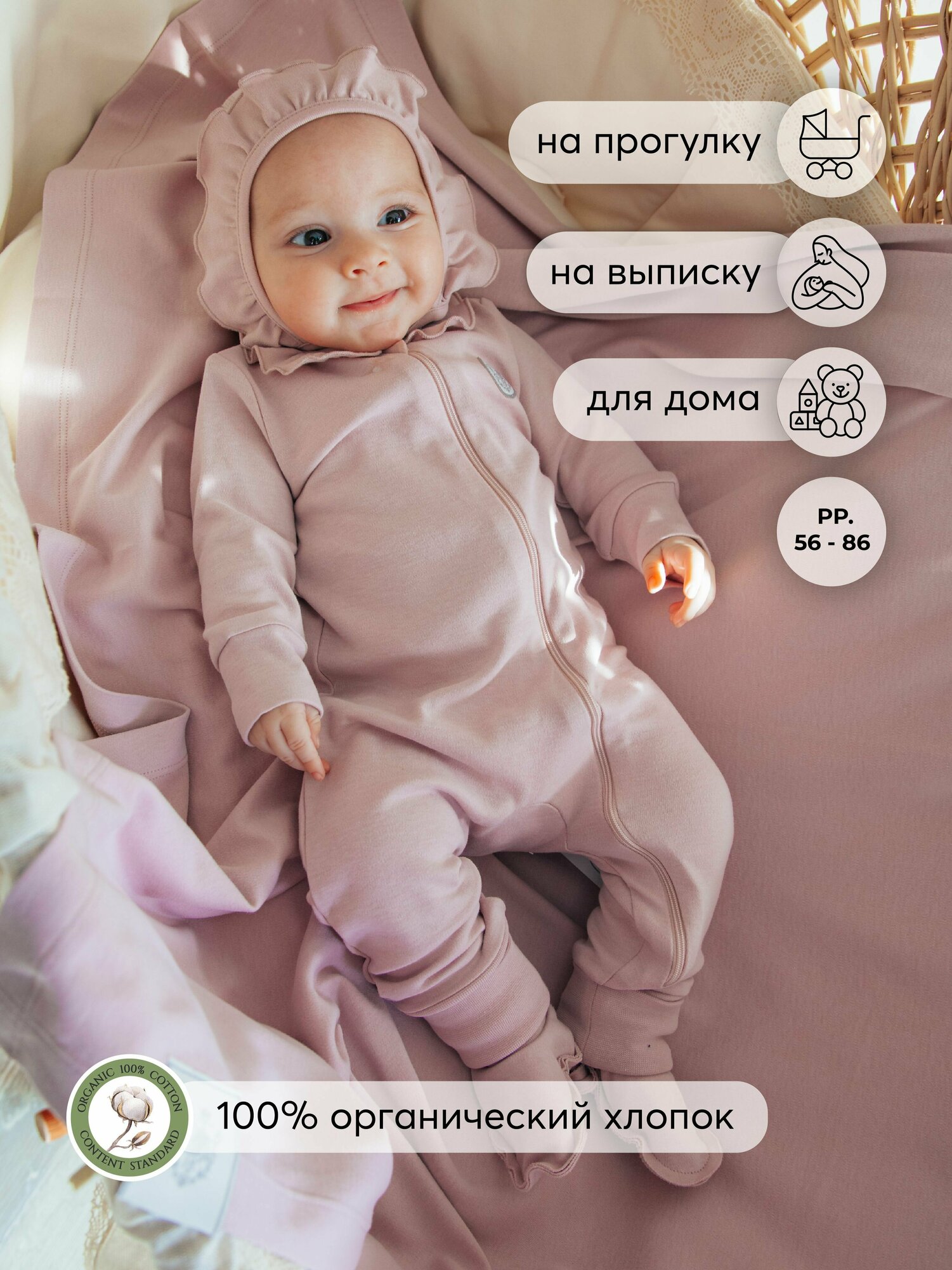Комбинезон Наследникъ Выжанова Базовая коллекция, закрытая стопа, размер 68-44, пудра 1 997 ₽