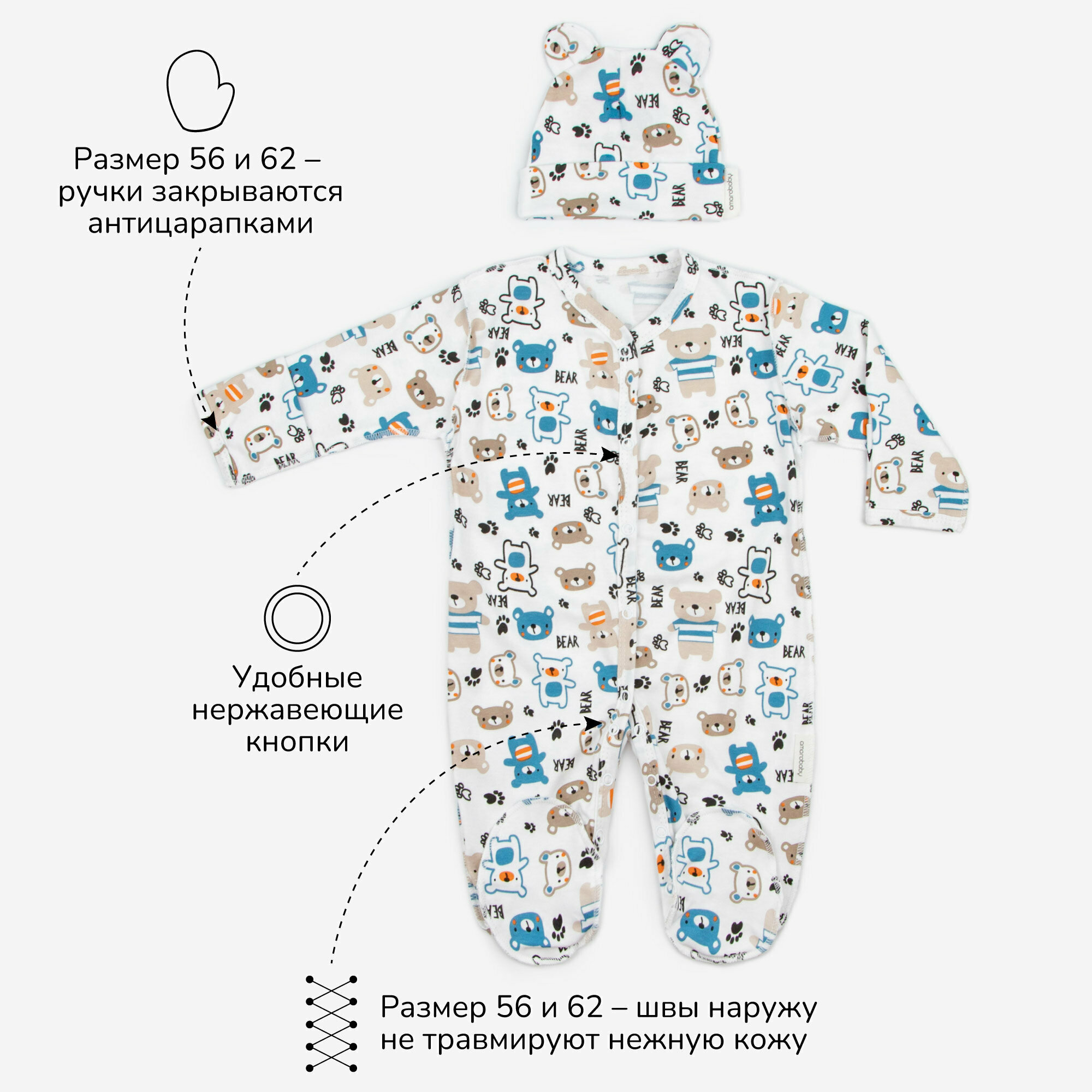 Комбинезон Amarobaby Nature, закрытая стопа, комплект из 2 шт., размер 56-62, белый 1 768 ₽