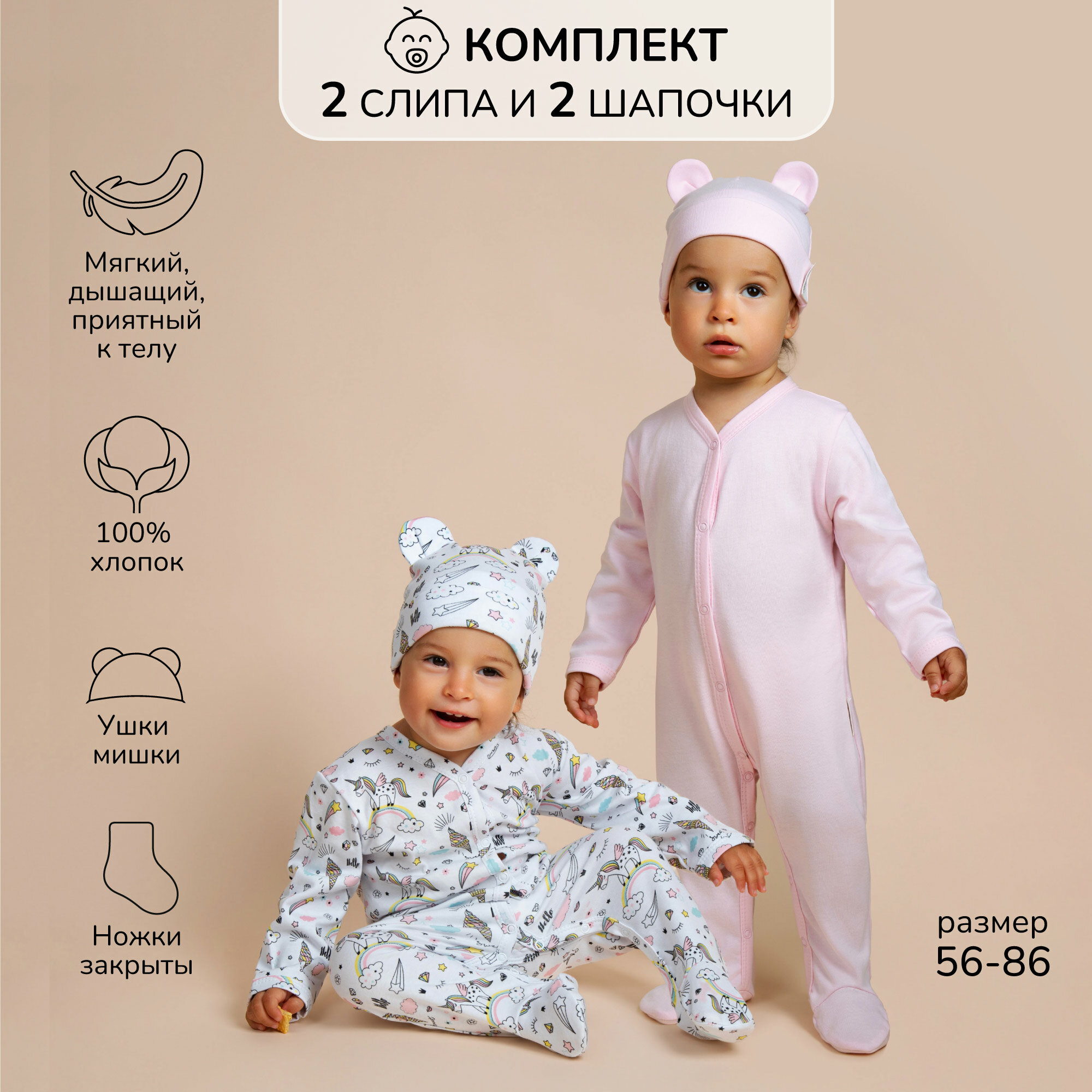 Комбинезон Amarobaby Nature, закрытая стопа, комплект из 2 шт., размер 62-68, белый 1 750 ₽