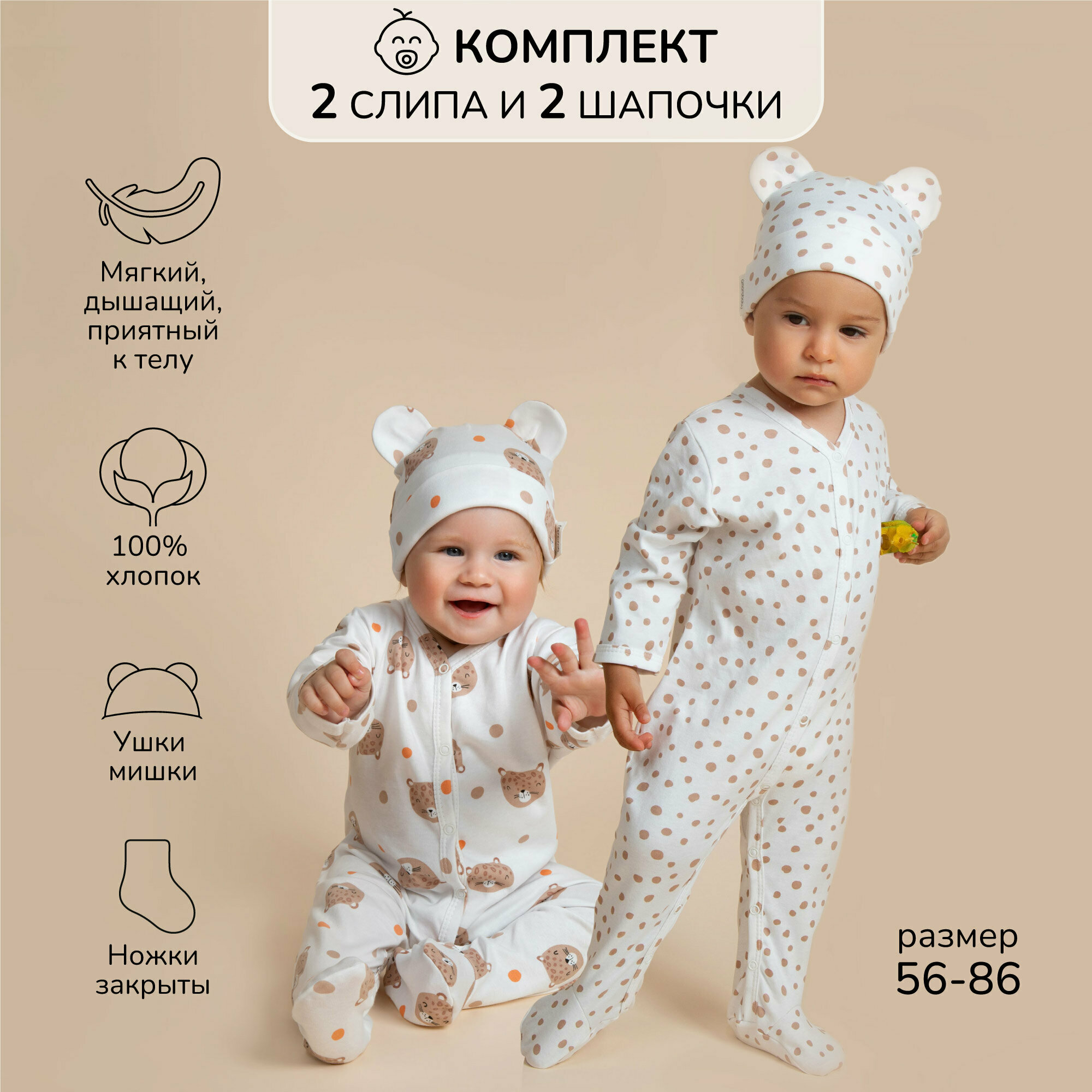 Комбинезон Amarobaby Nature, закрытая стопа, комплект из 2 шт., размер 74-80, бежевый/коричневый 1 719 ₽