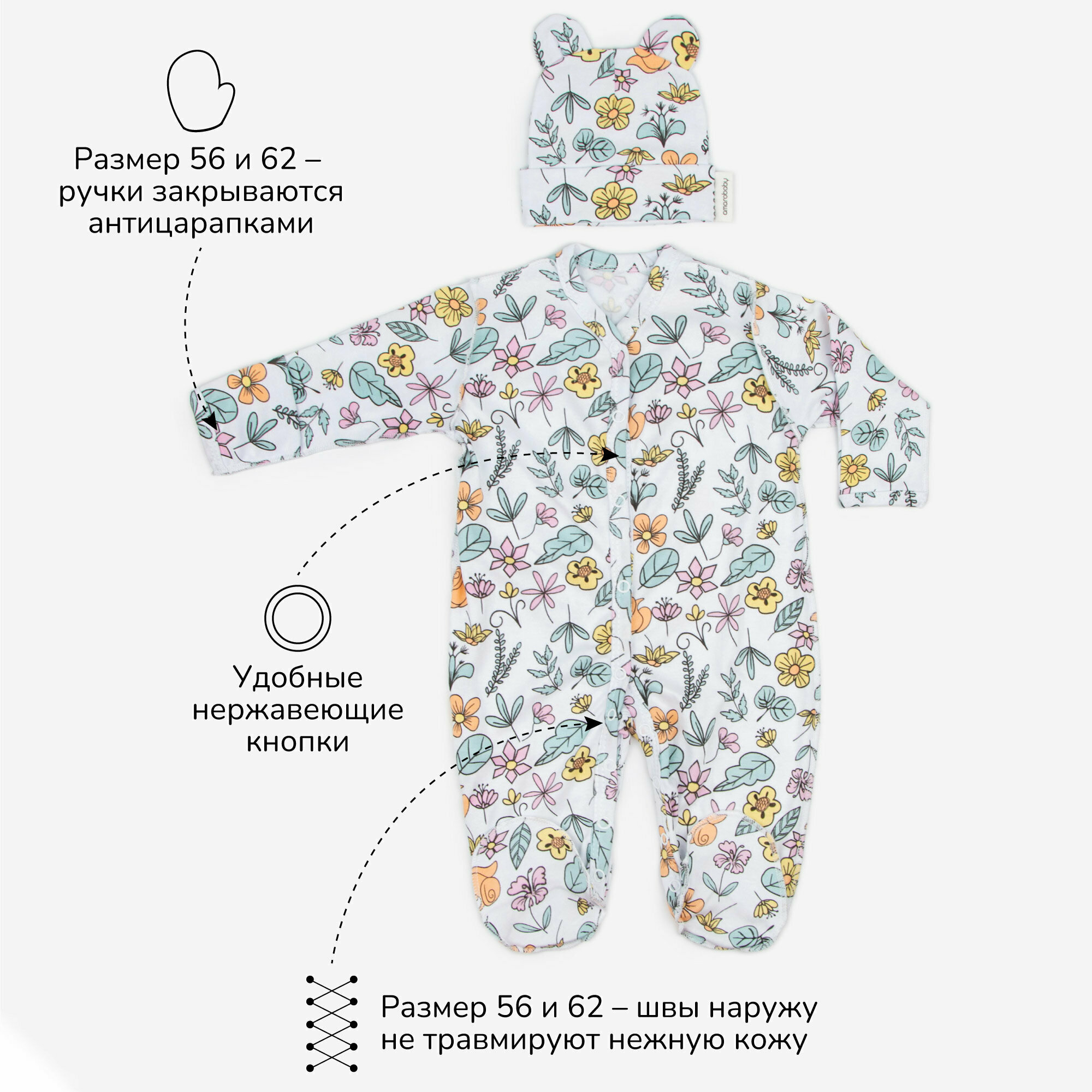 Комбинезон Amarobaby Nature, закрытая стопа, комплект из 2 шт., размер 56-62, белый 1 768 ₽
