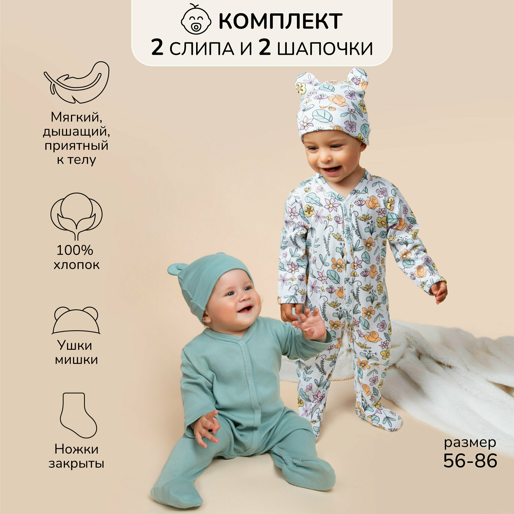 Комбинезон Amarobaby Nature, закрытая стопа, комплект из 2 шт., размер 56-62, мультиколор 1 774 ₽