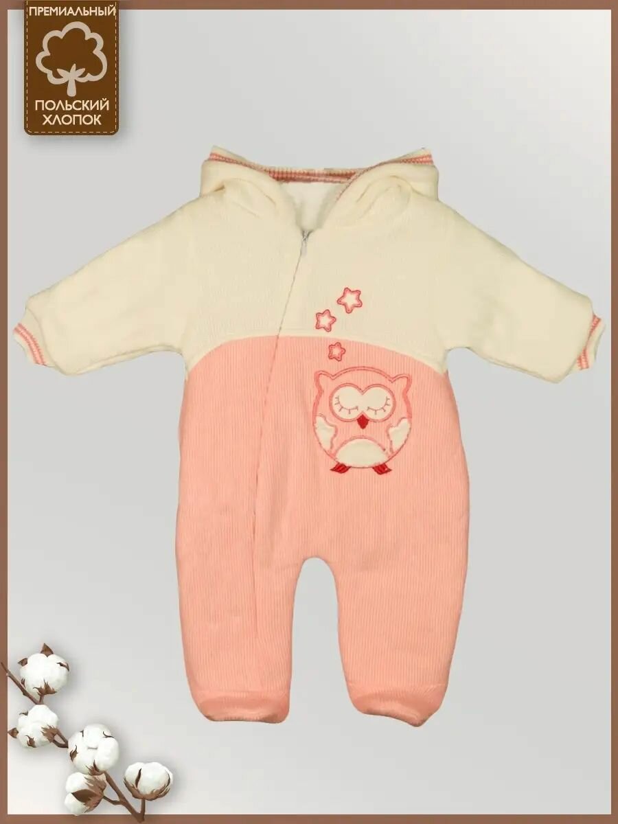 Комбинезон Карапузик, закрытая стопа, размер 68 (3-6 мес), персиковый информация: