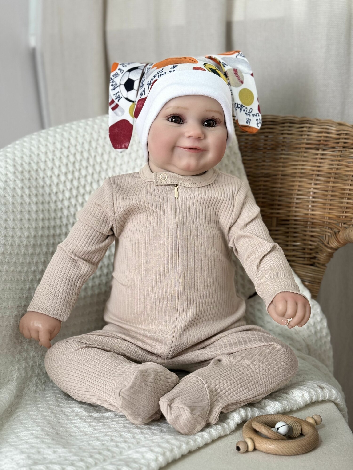 10 цен на Комбинезон YOULALA Весна-лето 2024, закрытая стопа, размер 20 (62-68) 2-3 мес., бежевый