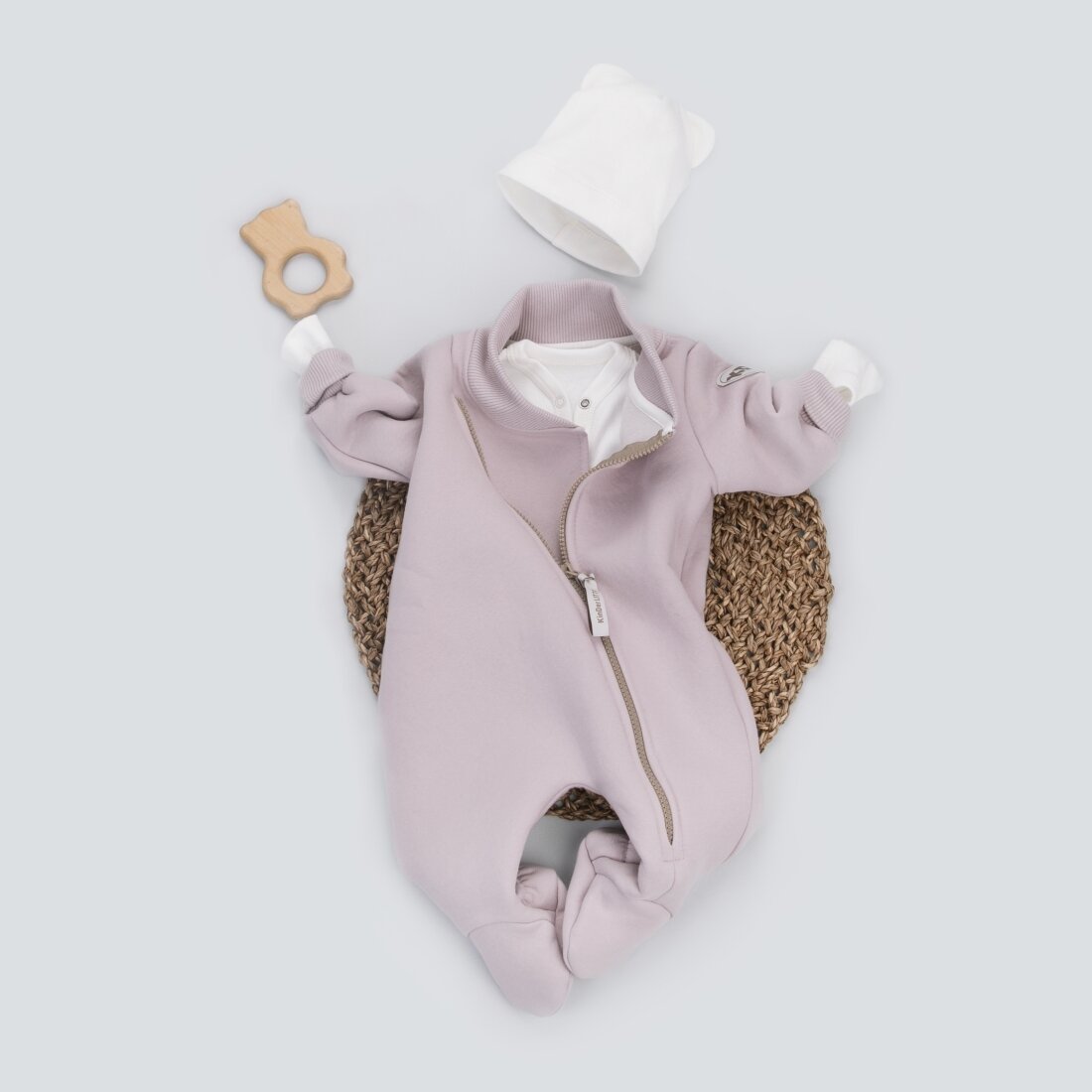 Комбинезон KinDerlitto Комбинезон-поддева "Topolino", футер, хаки, 18, закрытая стопа, размер 56-62, пыльная роза, лиловый информация: