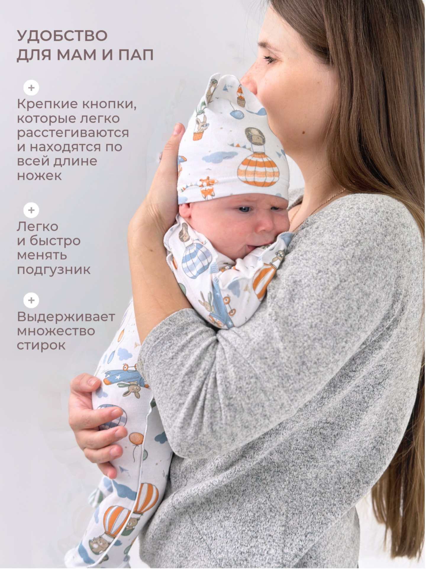 Отзывы на Комбинезон Наша история новорожденные, закрытая стопа, размер 50-56, воздушный шар