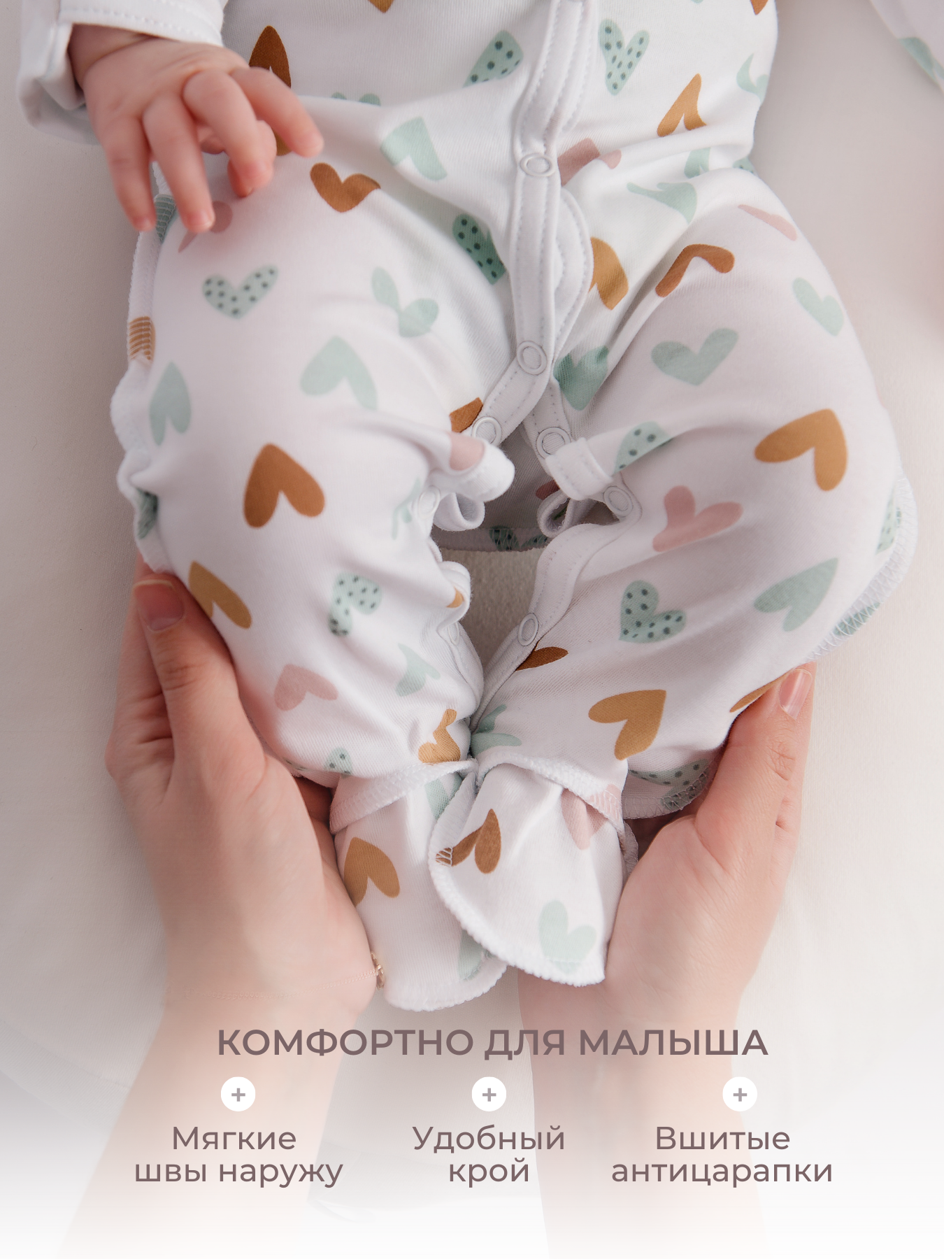 10 цен на Комбинезон Наша история новорожденные, закрытая стопа, размер 50-56, сердечки
