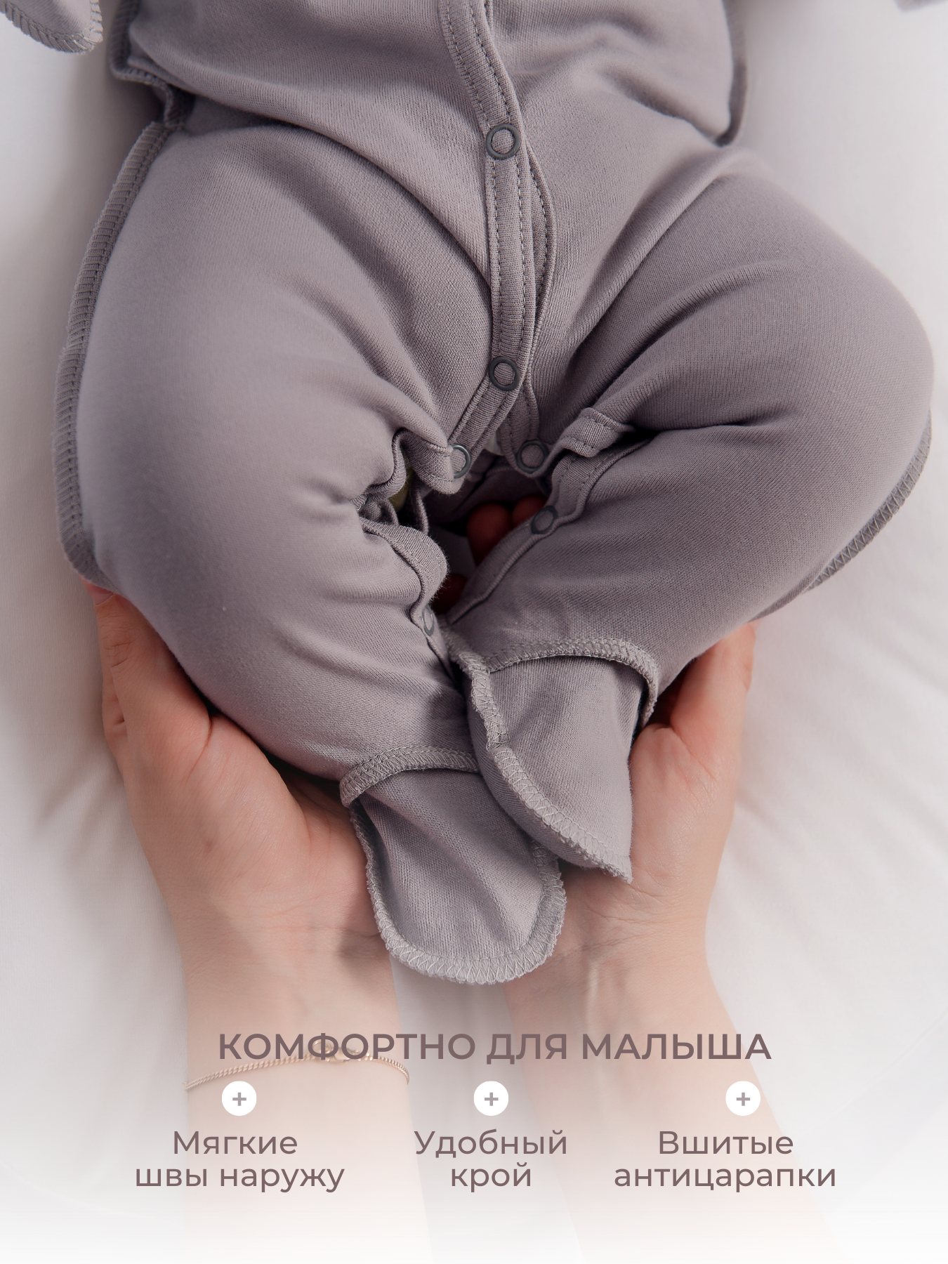Комбинезон Наша история новорожденные, закрытая стопа, размер 56-62, темно-серый 2 150 ₽