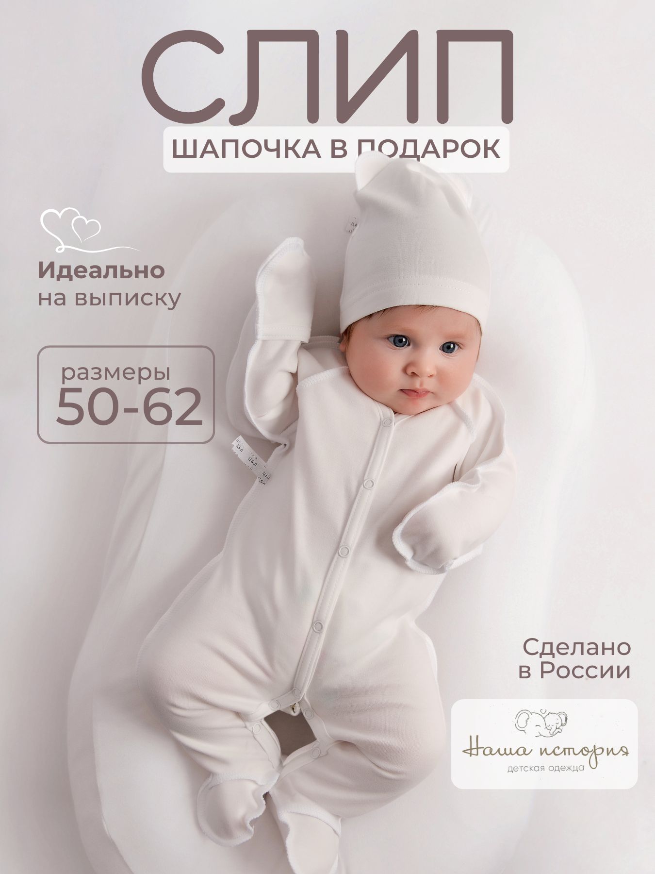 Комбинезон Наша история новорожденные, закрытая стопа, размер 56-62, сахар информация: