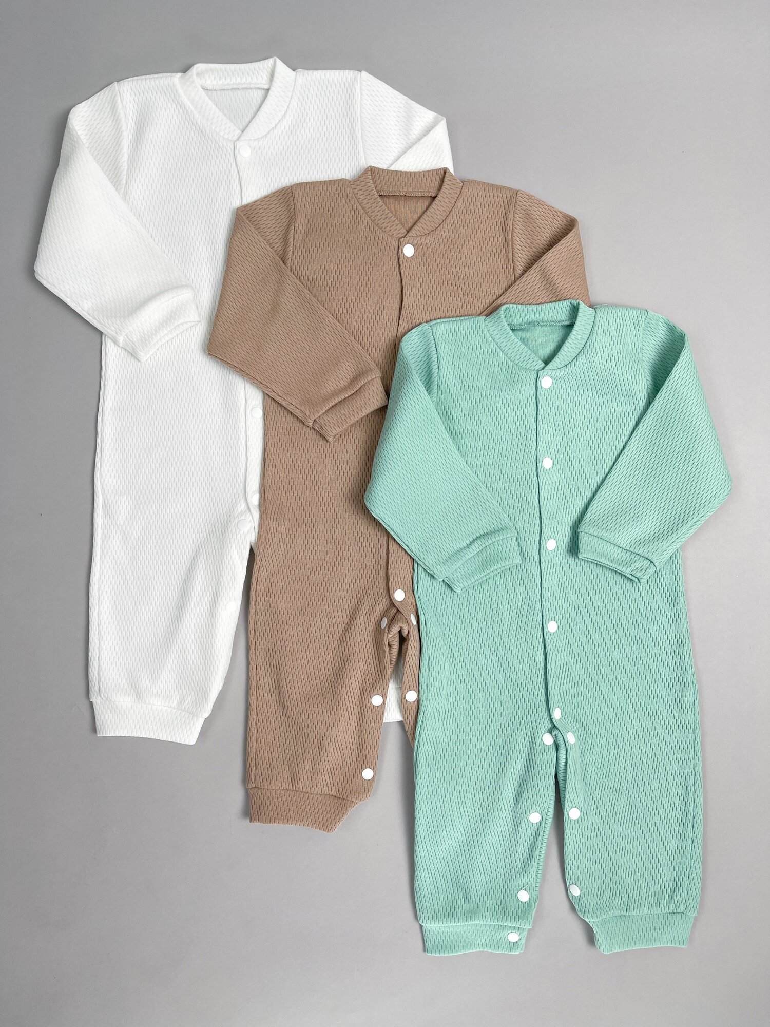Комбинезон Clariss Весна-лето 2025, закрытая стопа, комплект из 3 шт., размер 24 (74-80) 6-9 мес., зеленый, коричневый, белый 2 979 ₽