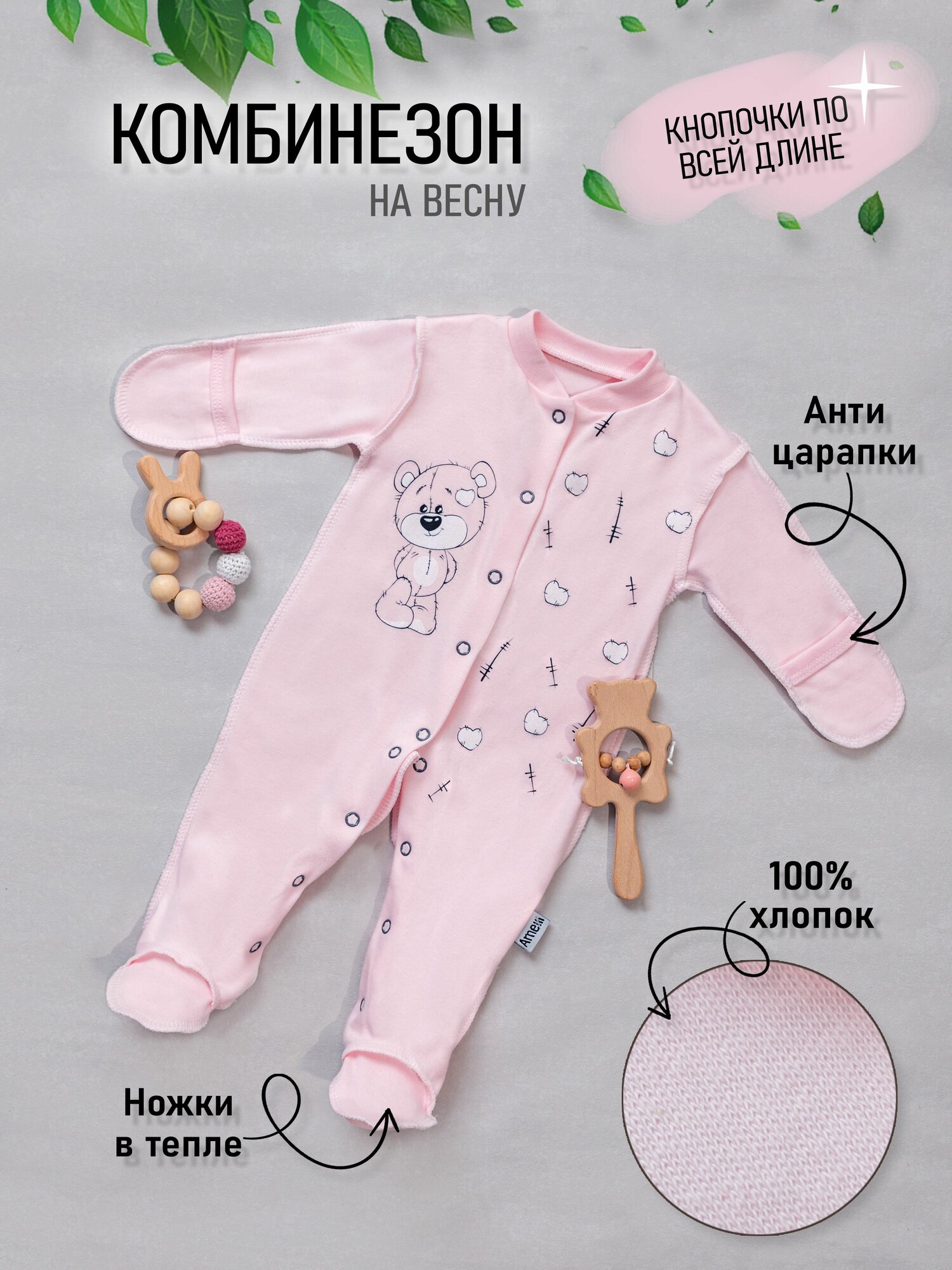 Комбинезон Amelli Весна-лето 2024, размер 62, зелeный 1 025 ₽