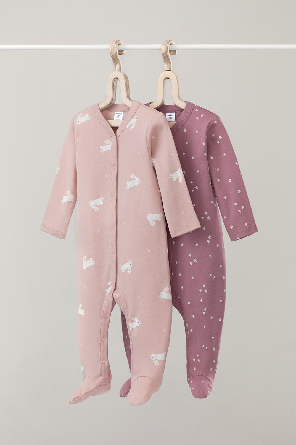 Комбинезон crockid К 6025-2уп/цветочные снежинки,зайчики, закрытая стопа, комплект из 2 шт., размер 48/74, розовый информация: