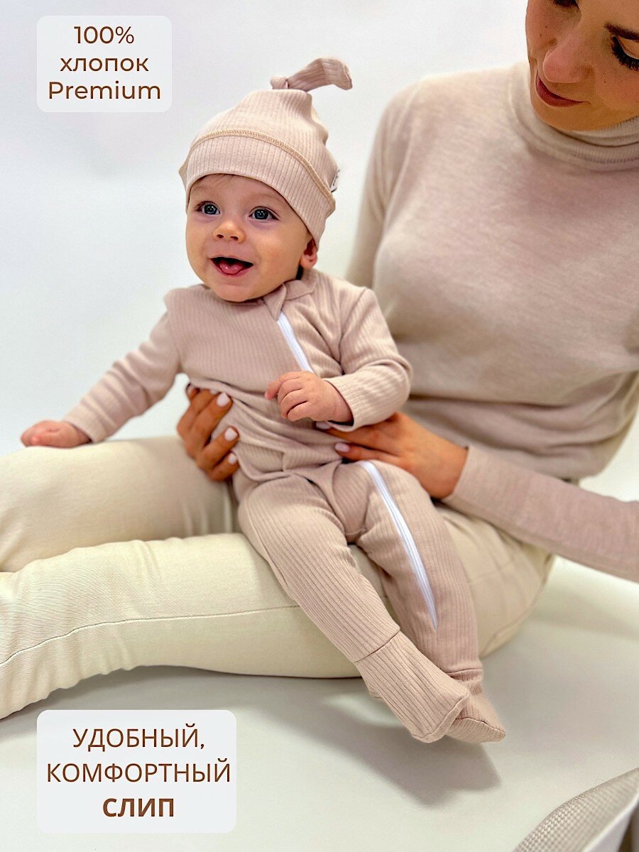 Комбинезон Bebo, закрытая стопа, размер 62, экрю 1 250 ₽