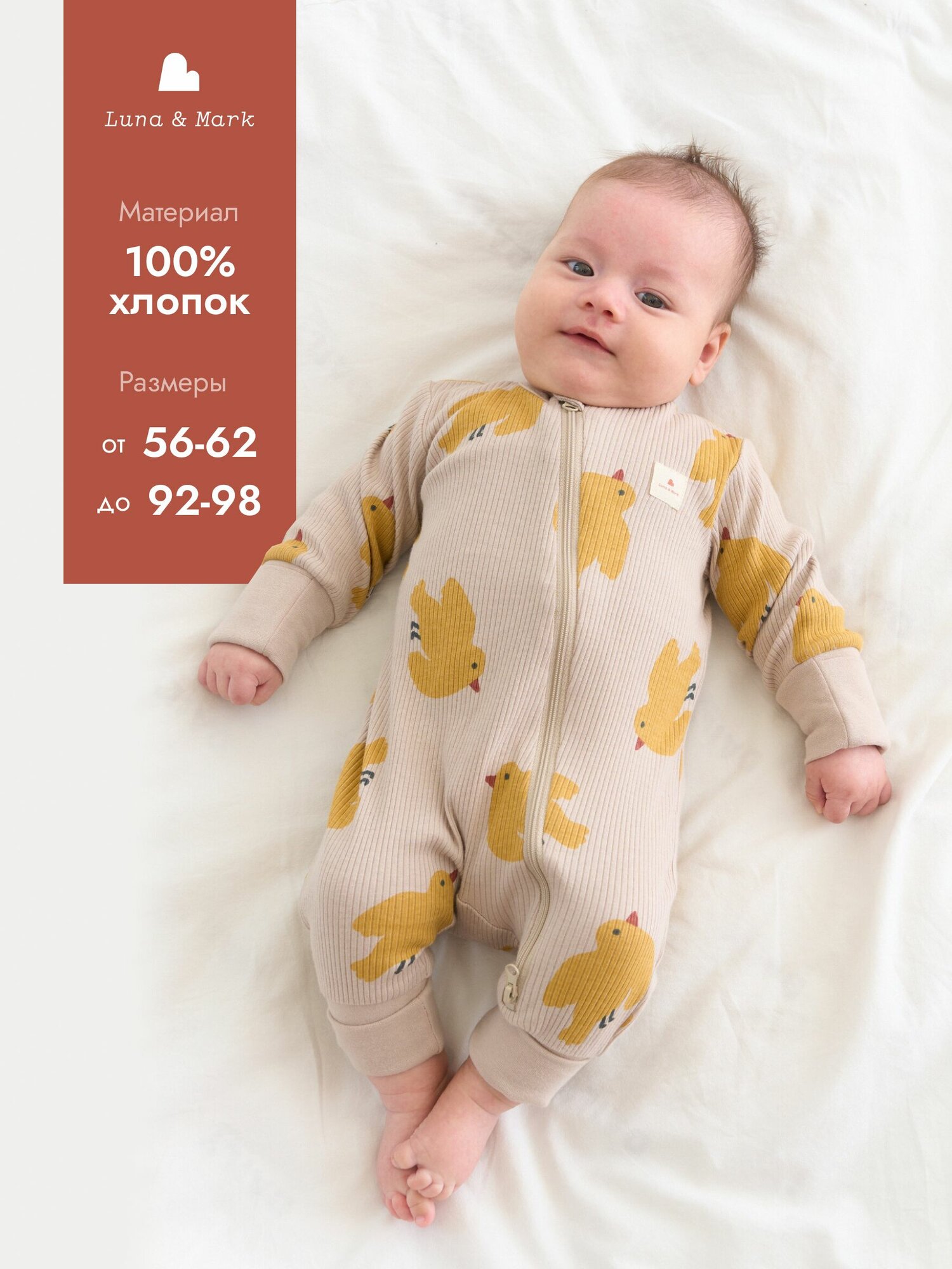 Отзывы на Комбинезон Luna & Mark Осень-зима 2024, открытая стопа, размер 56-62, птички