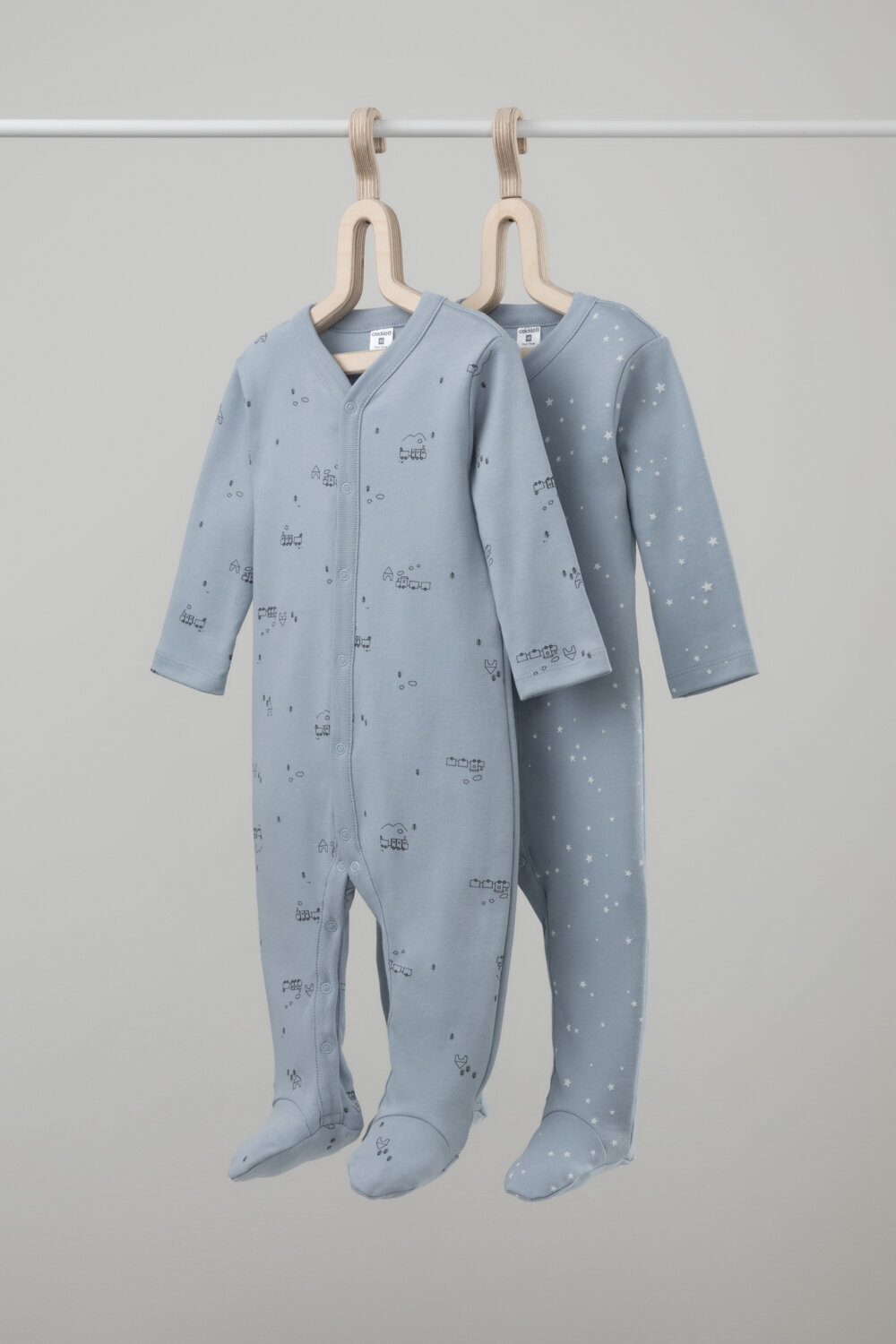 Комбинезон crockid К 6025-2уп/паровозики,свет звезд, закрытая стопа, комплект из 2 шт., размер 44/68, голубой информация: