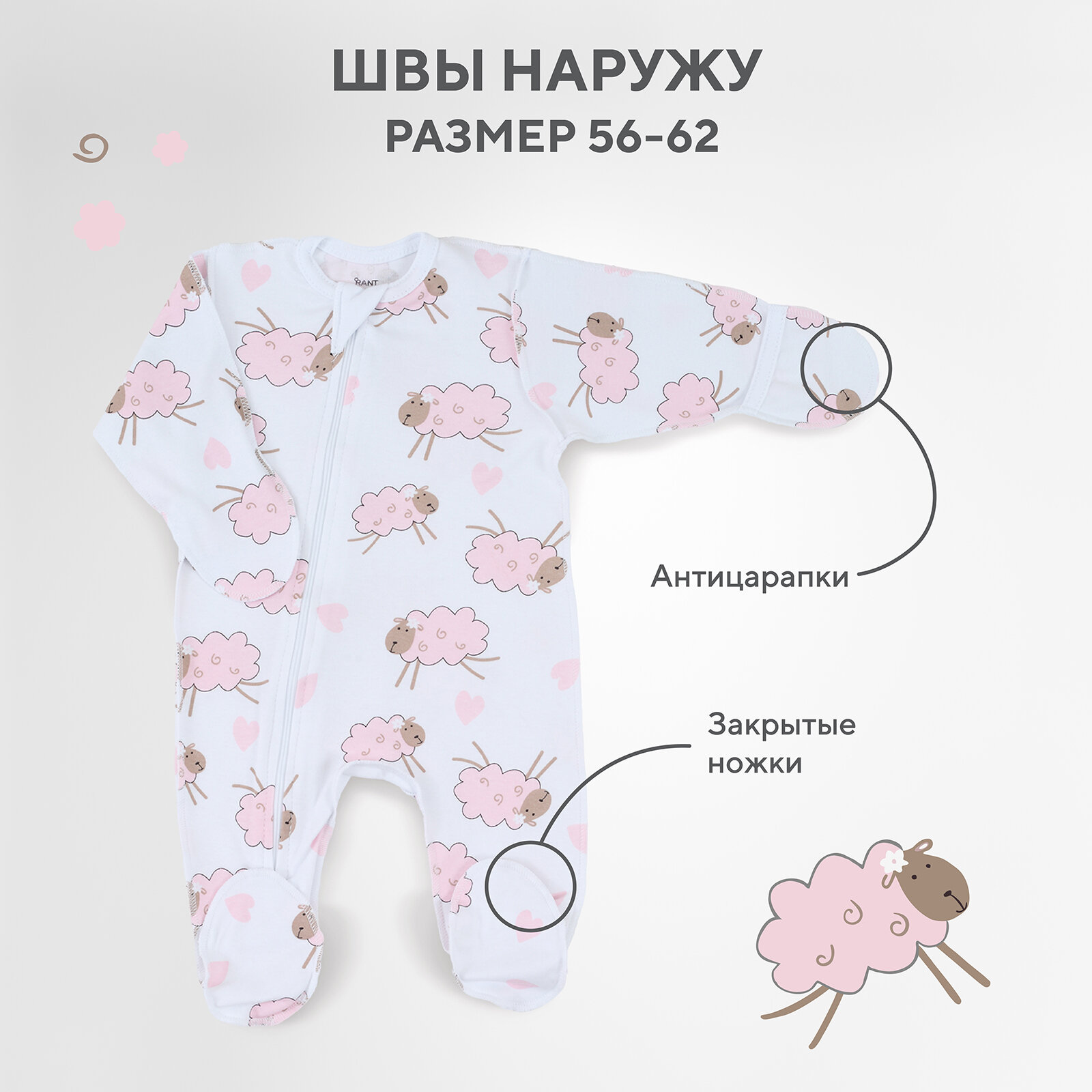 Комбинезон RANT, размер 62, розовый/белый информация: