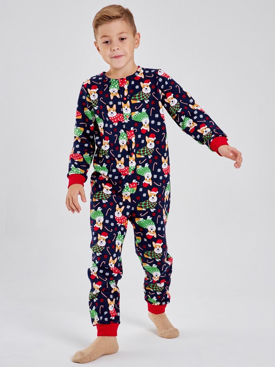 Комбинезон Веселый Малыш Осень-зима 2024, открытая стопа, размер 128-134, синий, зеленый, красный 1 590 ₽