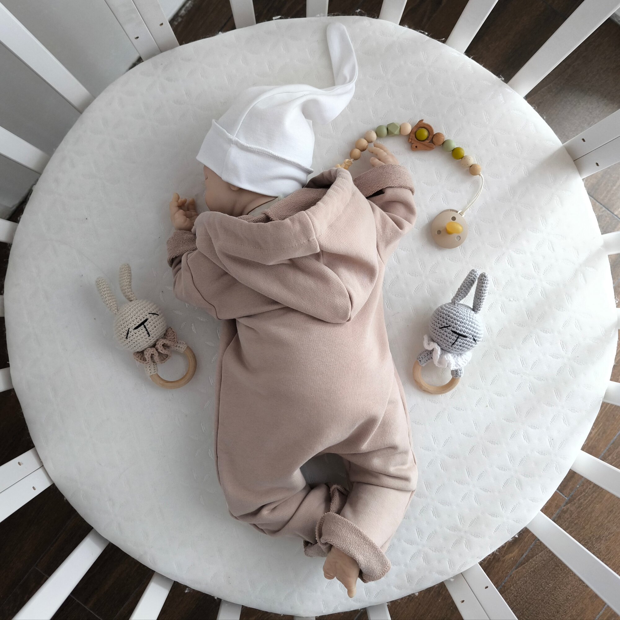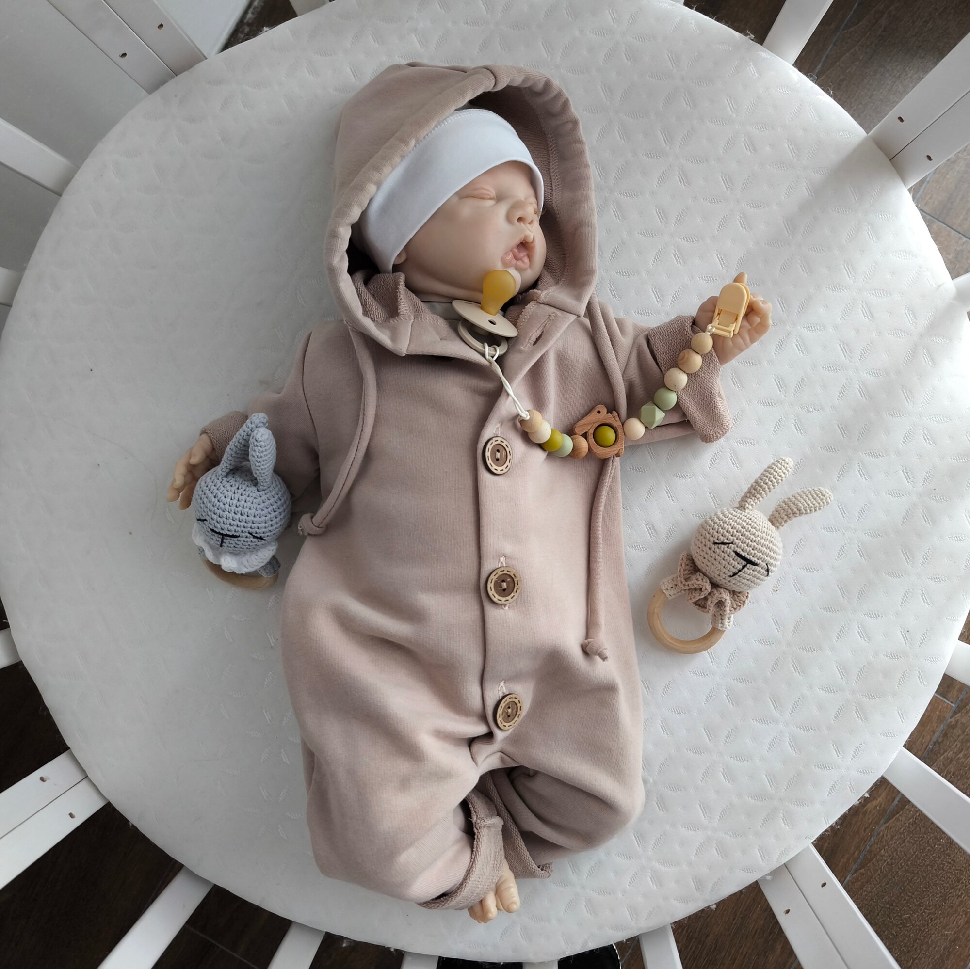 Комбинезон MAMINY ZAPISKY Комбинезон из футера с капюшоном, с утягивающими завязками, 0-3 мес, MAMINY ZAPISKY, открытая стопа, размер 62, бежевый информация: