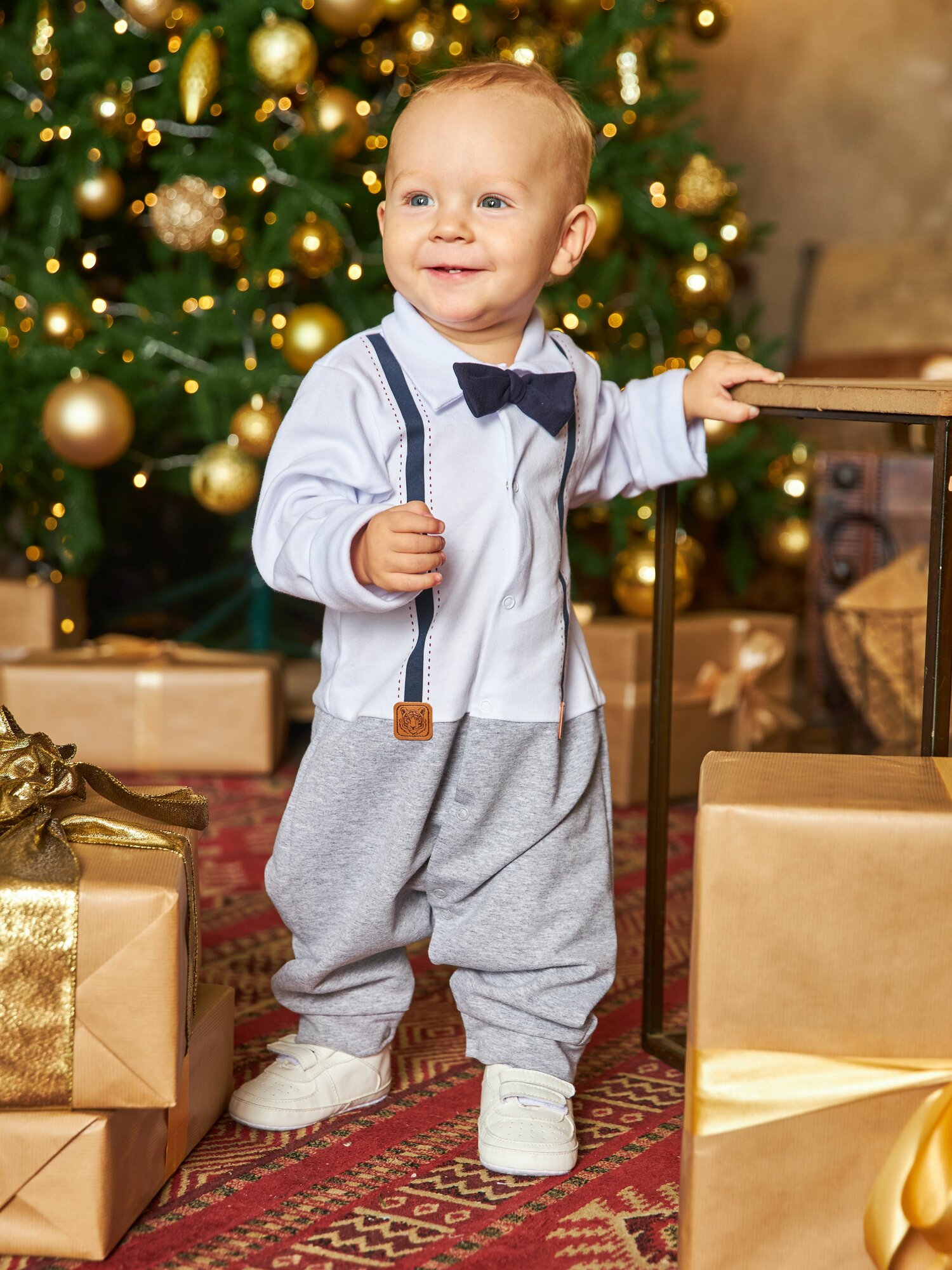 Комбинезон СветЛена Одежда СветЛена для малышей, закрытая стопа, размер 56, белый/серый