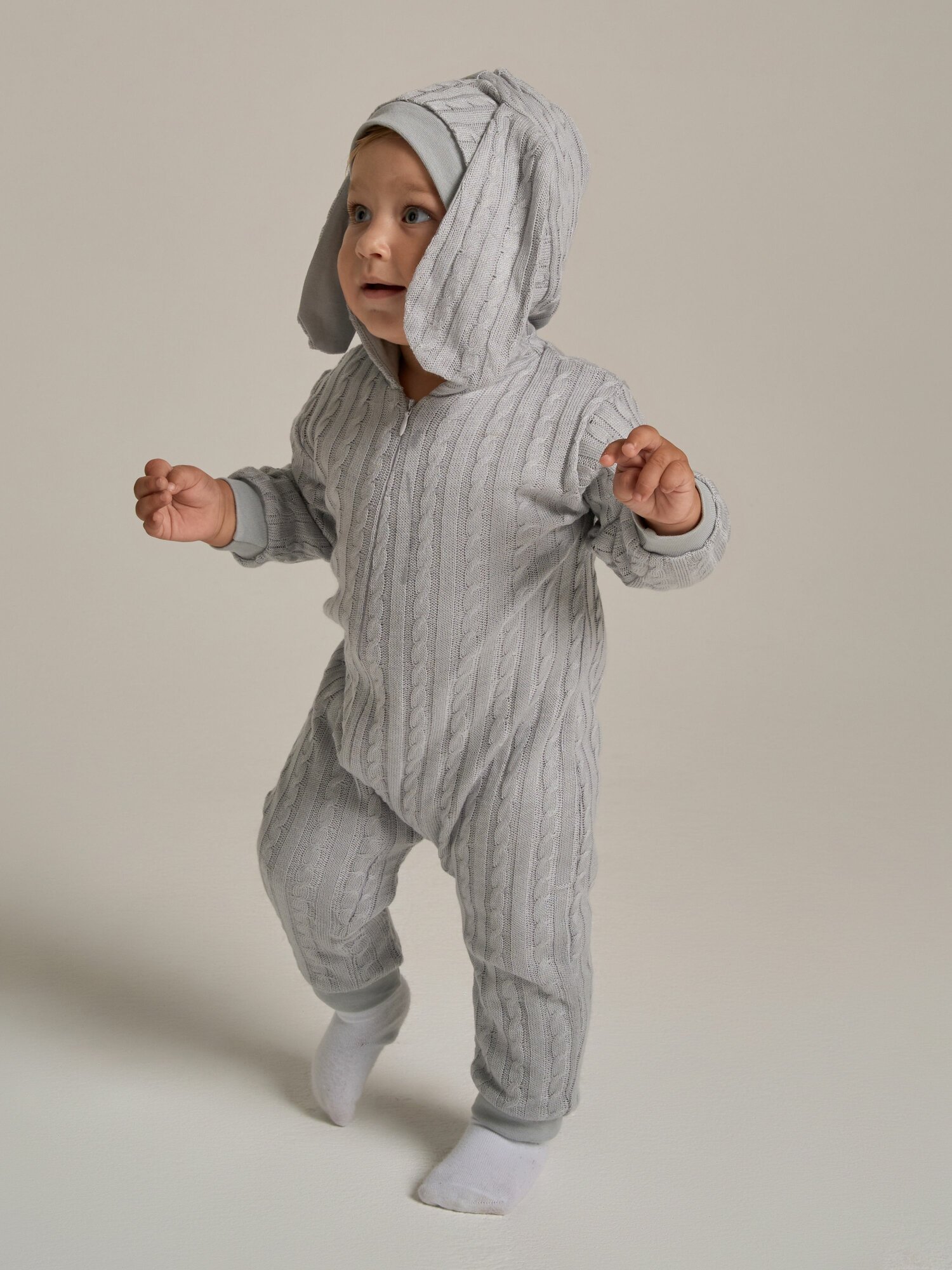 Комбинезон Nice cat, закрытая стопа, размер 56, серый
