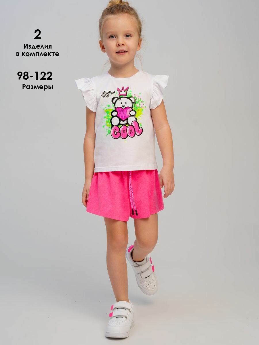 Комплект одежды playToday Весна-лето 2025, размер 122, белый/фуксия 1 133 ₽