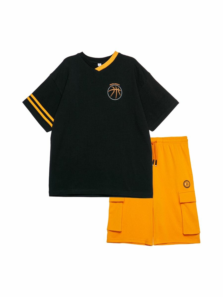 10 цен на Комплект одежды playToday Весна-лето 2025, размер 140, черный/оранжевый