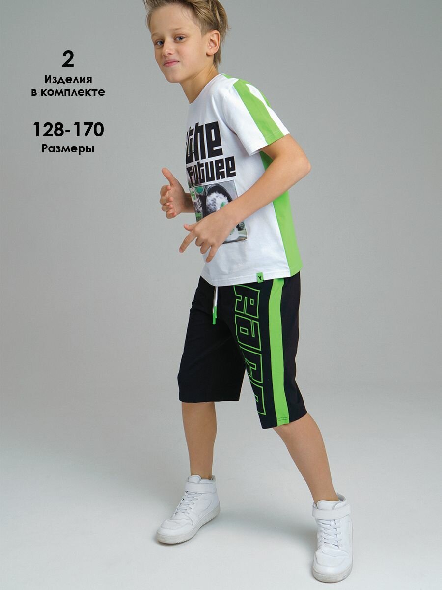 Комплект одежды playToday, размер 164, черный, зеленый, белый 1 835 ₽