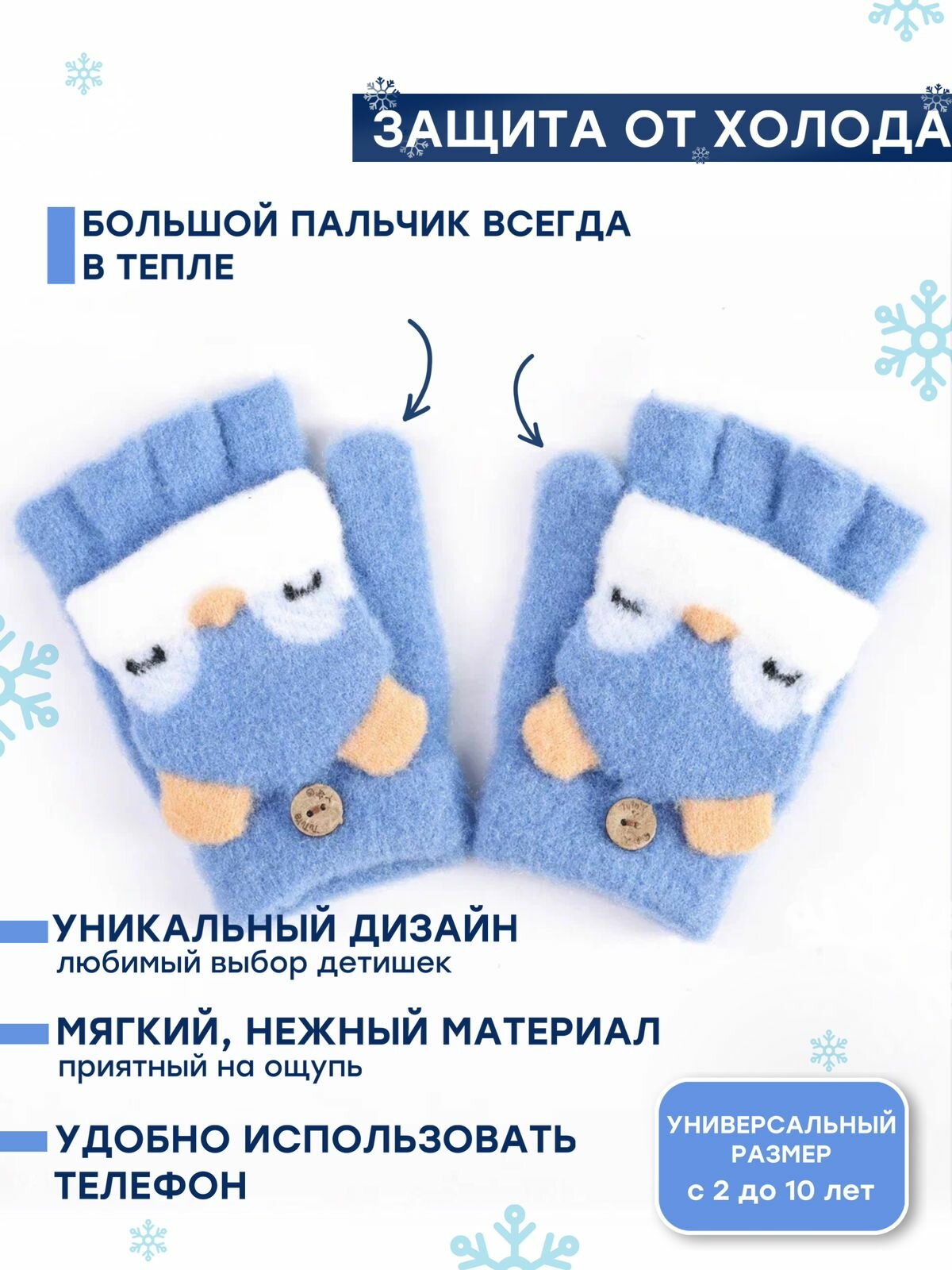 Перчатки COMFIAMO варежки для детей, размер универсальный, синий/голубой информация: